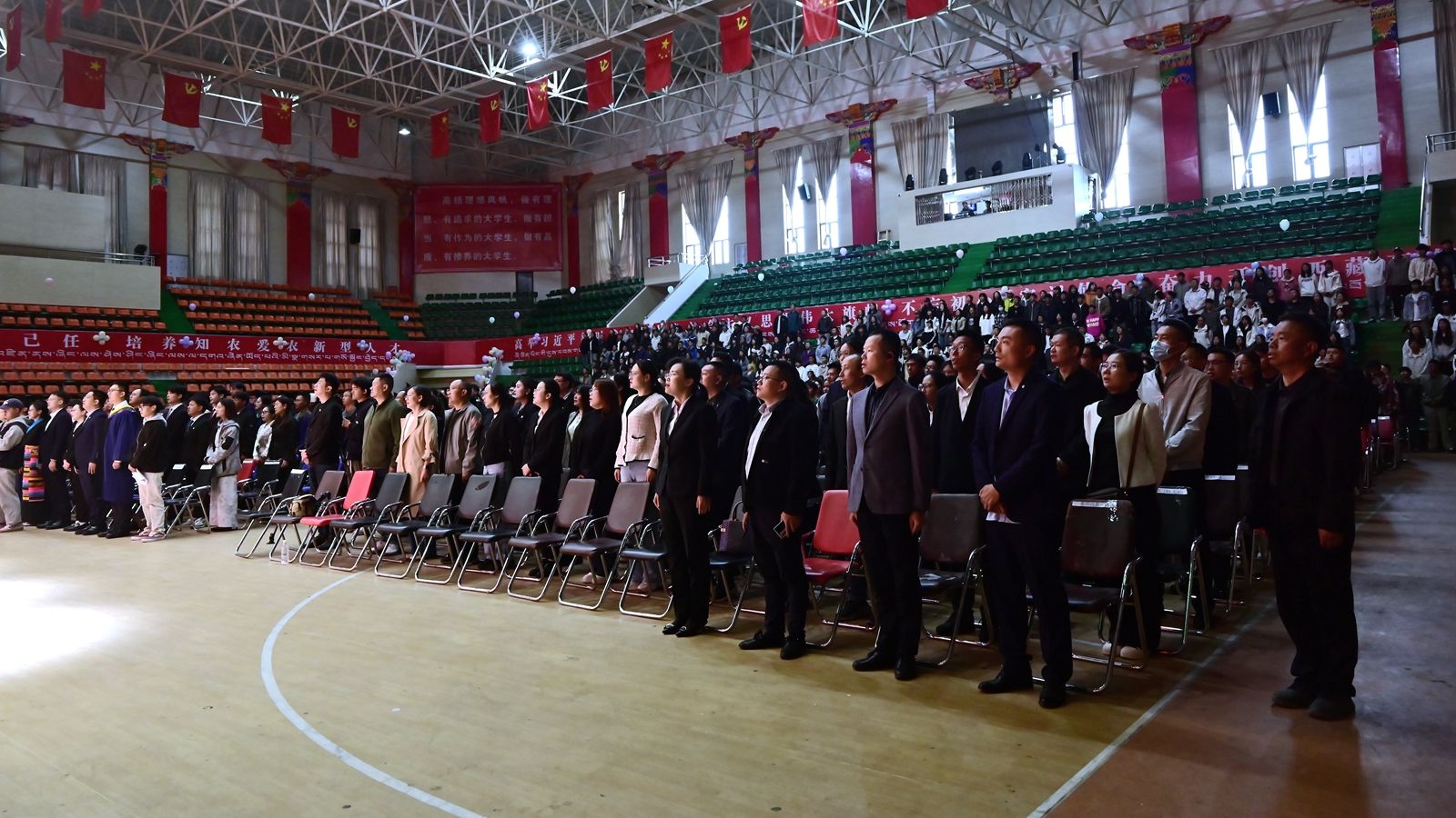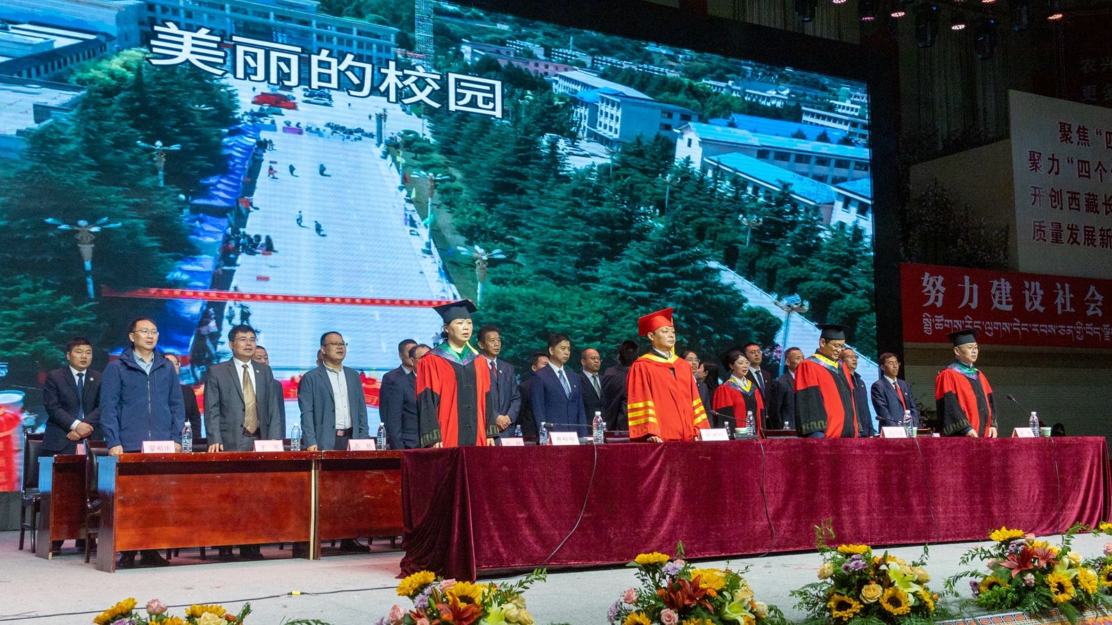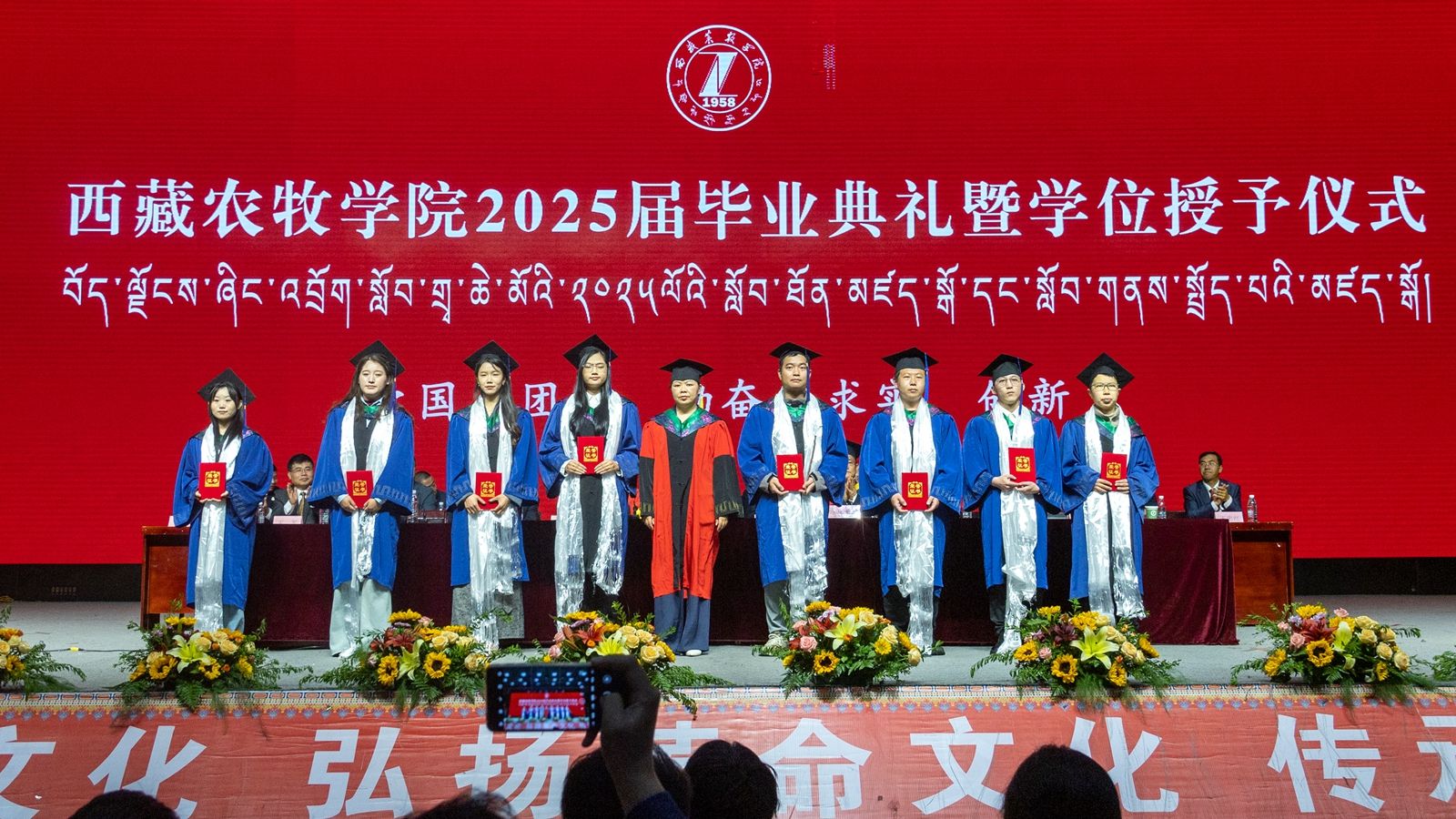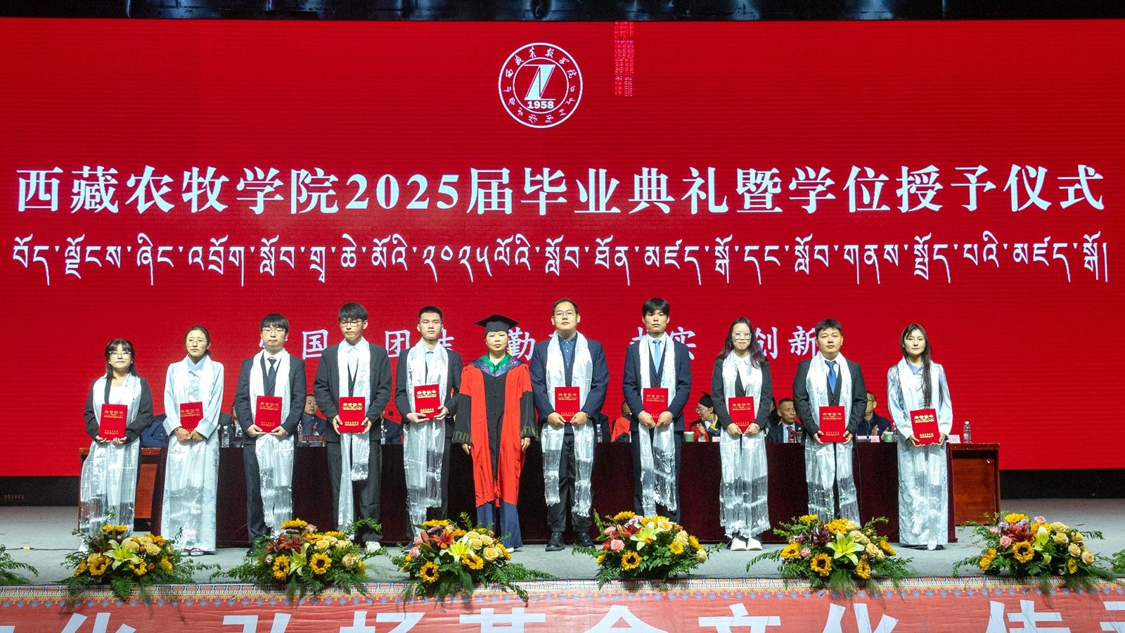 6月16日上午,西藏农牧学院2025届毕业典礼暨学位授予仪式在校文体馆举行。学校党委书记、副校长张兴堂,校党委委员、副校长巩同梁,校党委委员、副校长曹仲华,校党委委员、副校长邢震以及各职能部门、二级学院(部、所)负责人及教师代表、毕业生代表和在校生代表等1200余人共同见证和庆祝1810名本科生和275名研究生顺利毕业。
