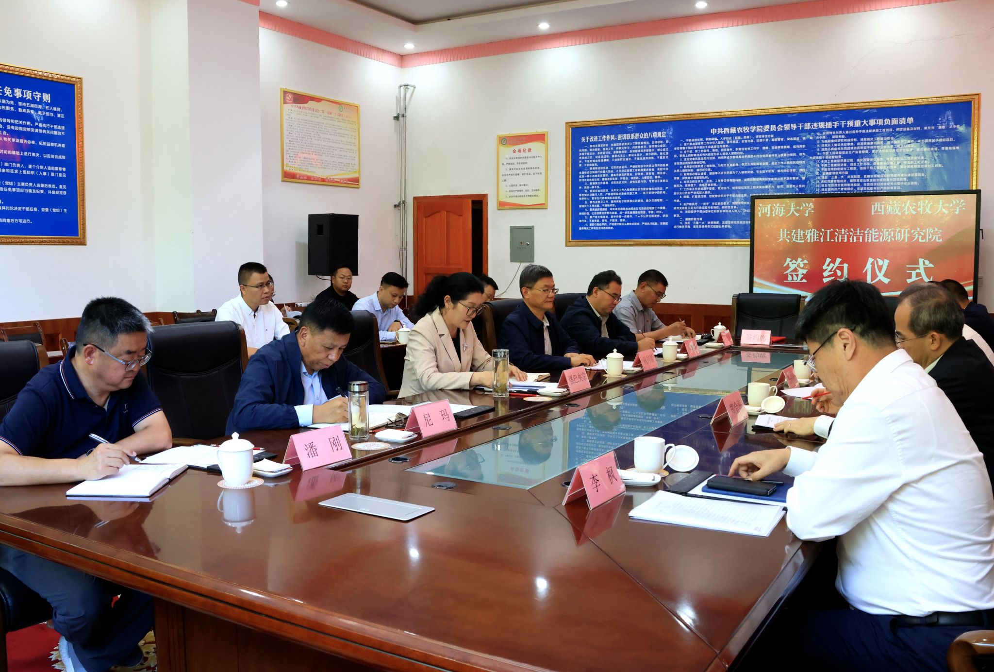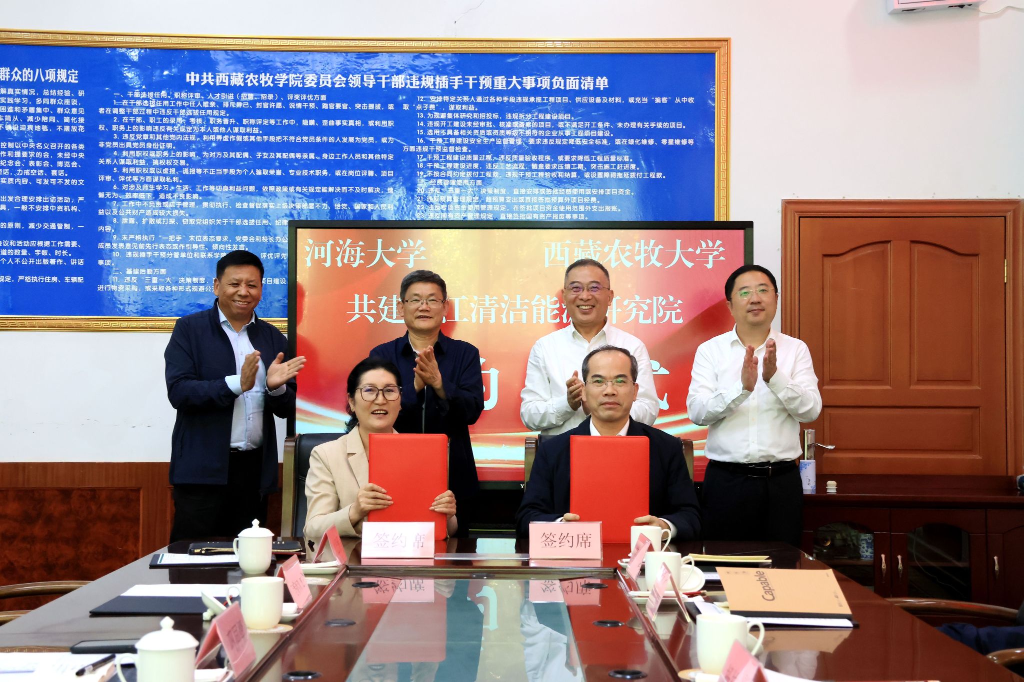 2025年8月6日,西藏农牧大学与河海大学共建雅江清洁能源研究院揭牌仪式暨座谈会在西藏农牧大学举行。河海大学党委书记杨桂山、校长郑金海、校长助理吴峰,西藏农牧大学校长强巴央宗、纪委书记尼玛、党委委员提名人选刘晓丽出席。西藏农牧大学副校长巩同梁主持。
