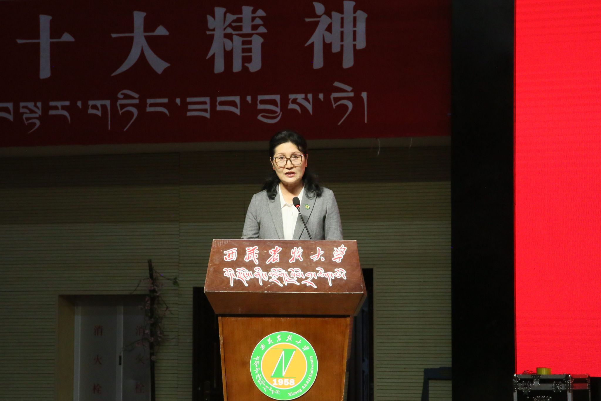 强巴央宗校长代表学校作了热情洋溢的讲话。她首先向2025级本科生和研究生新生致以热烈欢迎,向受到表彰的先进集体和个人表示衷心的祝贺;为广大新生介绍了学校的办学历程和奋斗成就,以及学校成功更名后的新愿景。立足新起点,她寄语新同学:一是坚定理想信念,厚植家国情怀,铸牢中华民族共同体意识,设定高远目标,自觉将个人理想融入强国建设、民族复兴的伟大事业,永葆家国情怀与社会担当;二是矢志勤奋学习,锤炼过硬本领,锻造核心竞争力,以自主思考、知行合一的态度夯实专业基础、提升综合能力;三是砥砺品德修养,锤炼高尚人格,引领文明新风尚,践行社会主义核心价值观,弘扬中华民族优秀传统美德,以坚韧品格应对成长挑战;四是勇于担当作为,矢志拼搏奋斗,服务西藏谱新篇,积极投身西藏乡村振兴、生态文明建设、特色产业发展等广阔天地,将论文写在高原大地,努力成长为有理想、敢担当、能吃苦、肯奋斗的新时代好青年。