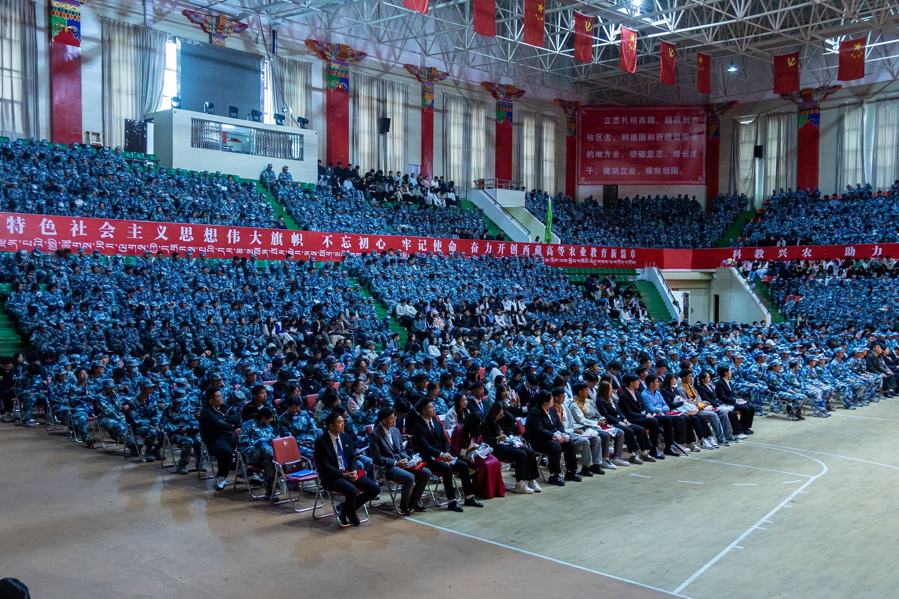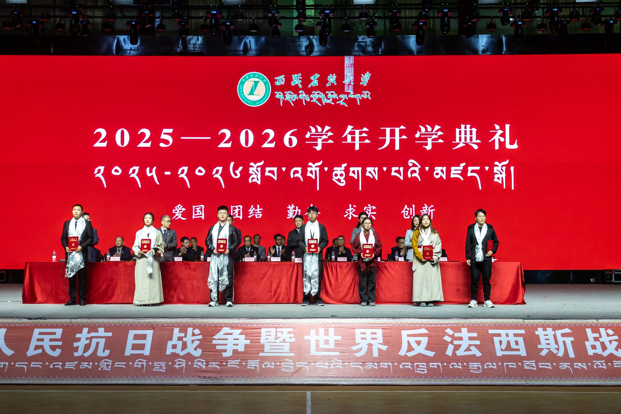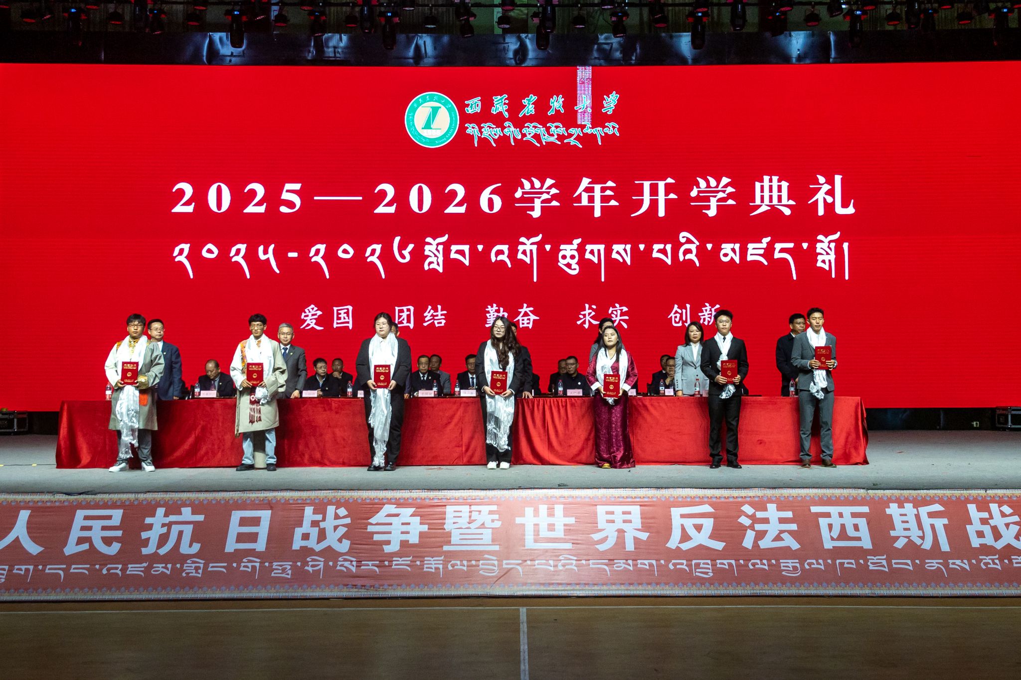 9月8日上午,西藏农牧大学2025-2026学年开学典礼在校文体馆隆重举行。校党委书记、副校长张兴堂,党委副书记、校长强巴央宗,校领导巩同梁、曹仲华、邢震、尼玛出席典礼,各学院及职能部门负责人、教职工代表、在校生代表与2025级全体新生参会。