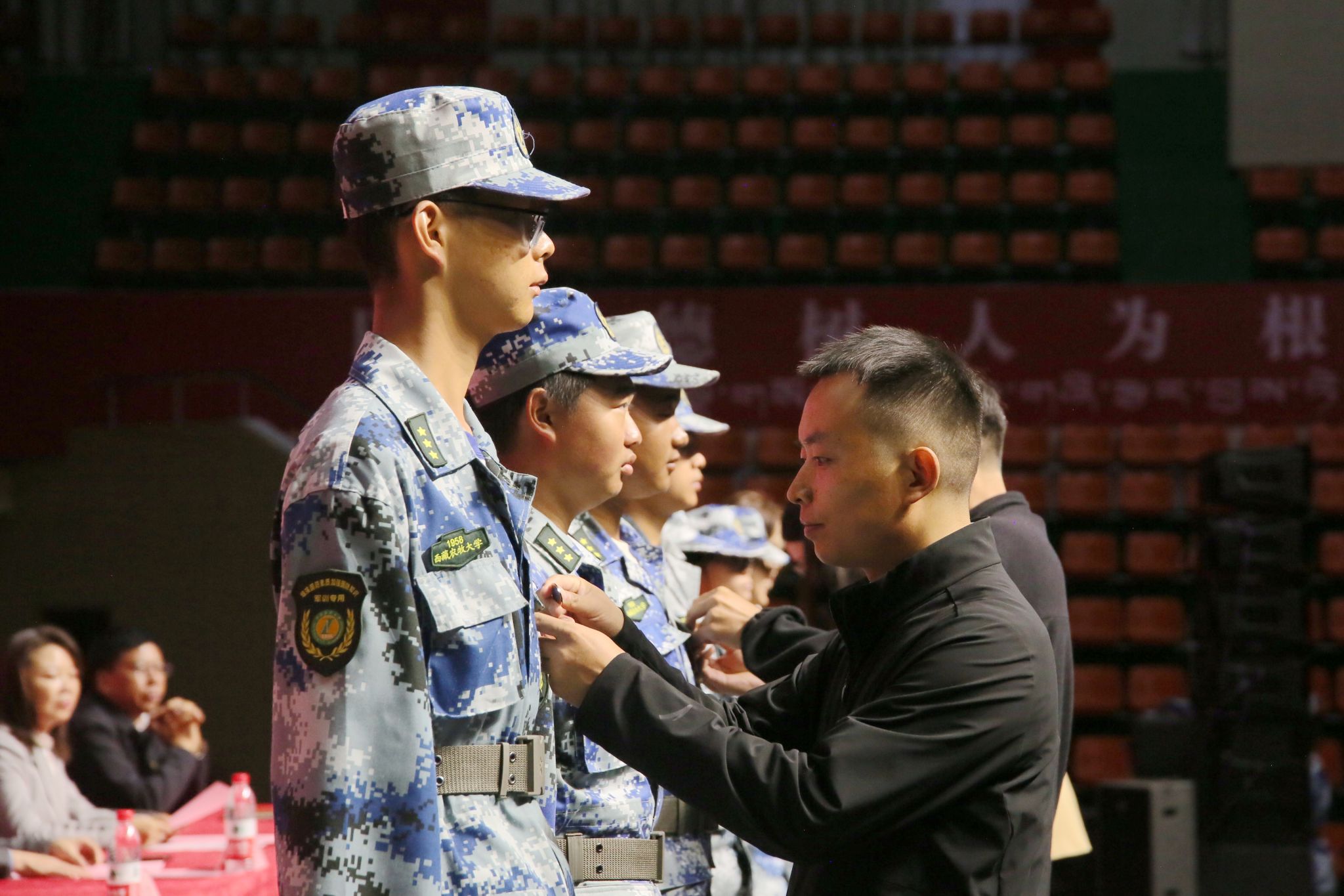 教师代表为2025级新生代表佩戴了校徽,一枚枚熠熠生辉的校徽承载着“博学为农、精业兴藏”的校训精神和学校“筹建精神”,寓意着身为“藏农大人”的使命和担当。