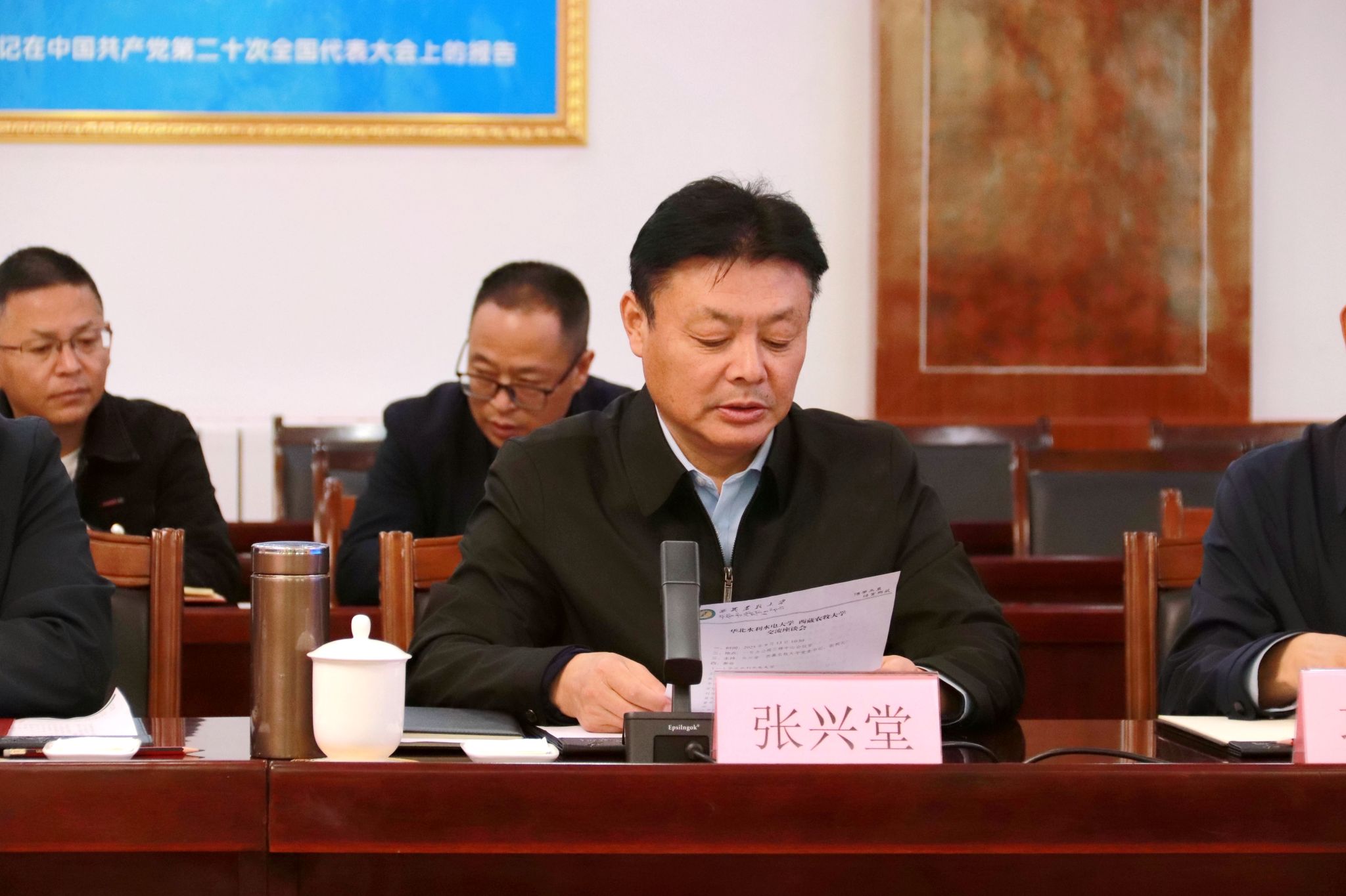 2025年9月13日,西藏农牧大学党委书记、副校长张兴堂与华北水利水电大学党委书记王笃波一行座谈交流。华北水利水电大学副校长张志增;西藏农牧大学党委委员、副校长巩同梁,党委委员提名人选、校长助理刘晓丽出席。双方有关单位负责同志及专家学者参加。