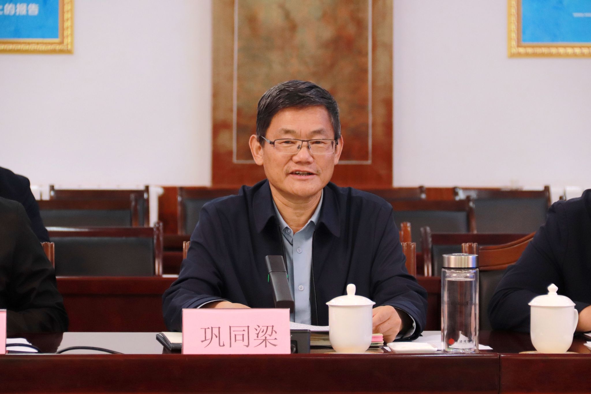 巩同梁简要介绍学校基本情况,并希望充分借助华北水利水电大学优势办学资源,紧紧围绕雅下水电开发、川藏铁路建设等国家重大工程,与我校深化合作交流,助力学校在学科专业、人才培养、科学研究方面实现新的更大突破。