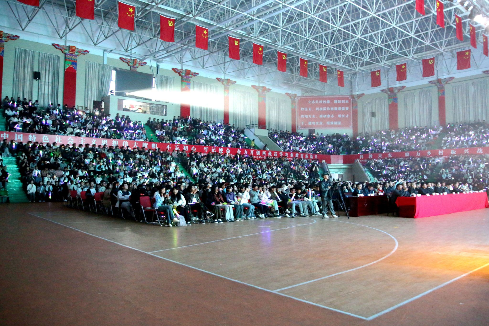 校党委书记、副校长张兴堂,党委副书记王程,党委委员、纪委书记尼玛等校领导出席,与各职能部门负责人、教师代表共同观看晚会,深情寄语新生,展现了学校对2025级学子的高度重视与殷切期望。