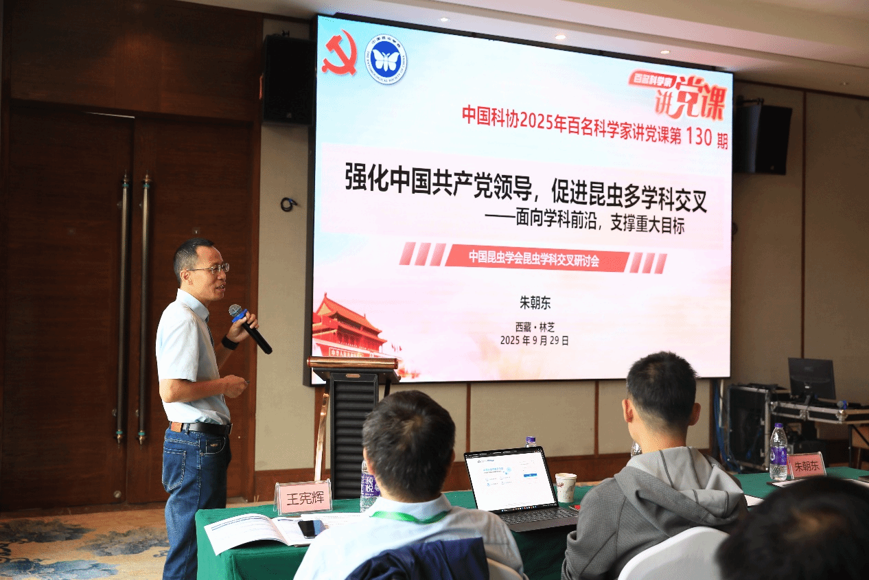 开幕式上,中国昆虫学会分类区系专业委员会主任、中国科学院动物研究所朱朝东研究员带领全体与会代表学习党课“强化中国共产党的领导,促进昆虫多学科交叉—面向学科前沿,支撑重大目标”,党课全面回顾了中国昆虫学发展历程,并介绍了青藏高原昆虫学研究简史,指出其进步离不开党的领导与老一辈科学家精神;并围绕会议主题系统总结昆虫学科近五年研究进展,凝练未来发展方向,明确未来五到十年昆虫学领域关键攻关方向,聚焦昆虫生物多样性保护、害虫绿色防控、传粉昆虫可持续利用及资源昆虫高效开发等核心议题;他呼吁推动昆虫学科交叉融合与跨学科协作,整合基因组学、生态学等前沿技术,不断提升我国在生物多样性保护、农林可持续发展和绿色农业领域的国际话语权。