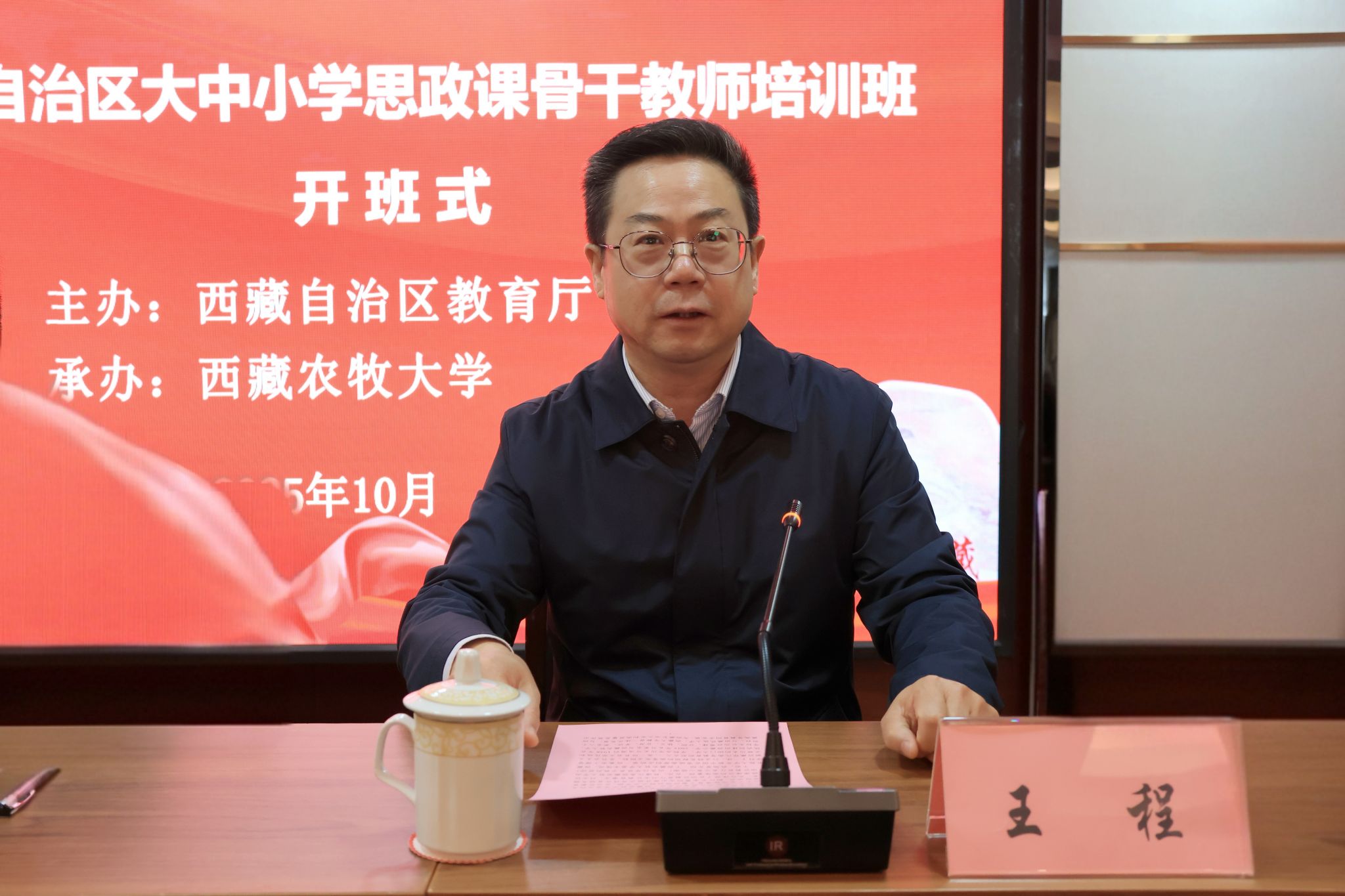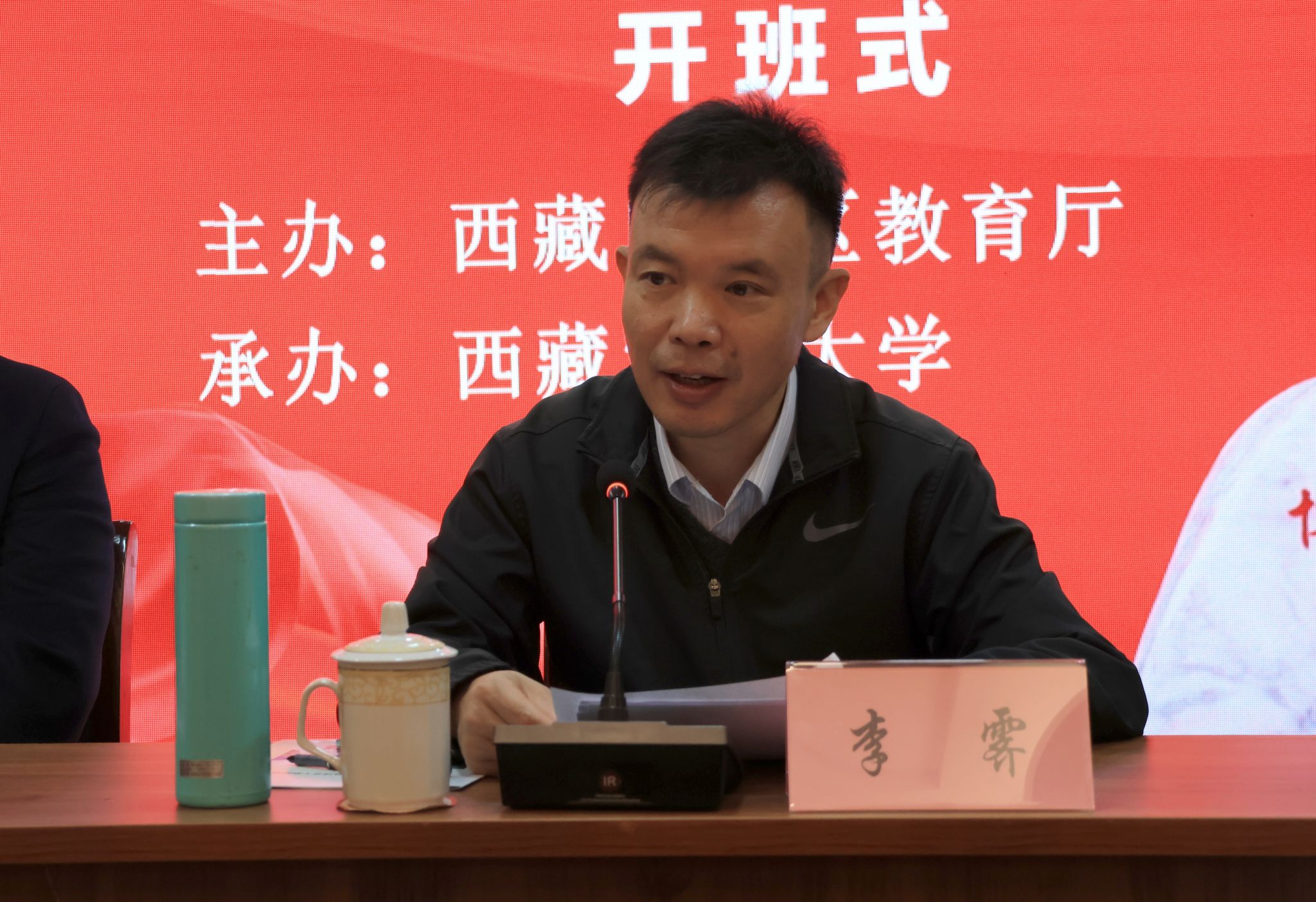 自治区教育厅党组成员、副厅长李霁出席并讲话,西藏农牧大学党委副书记王程致辞。开班式由西藏农牧大学马克思主义学院党委书记衡思泉主持。