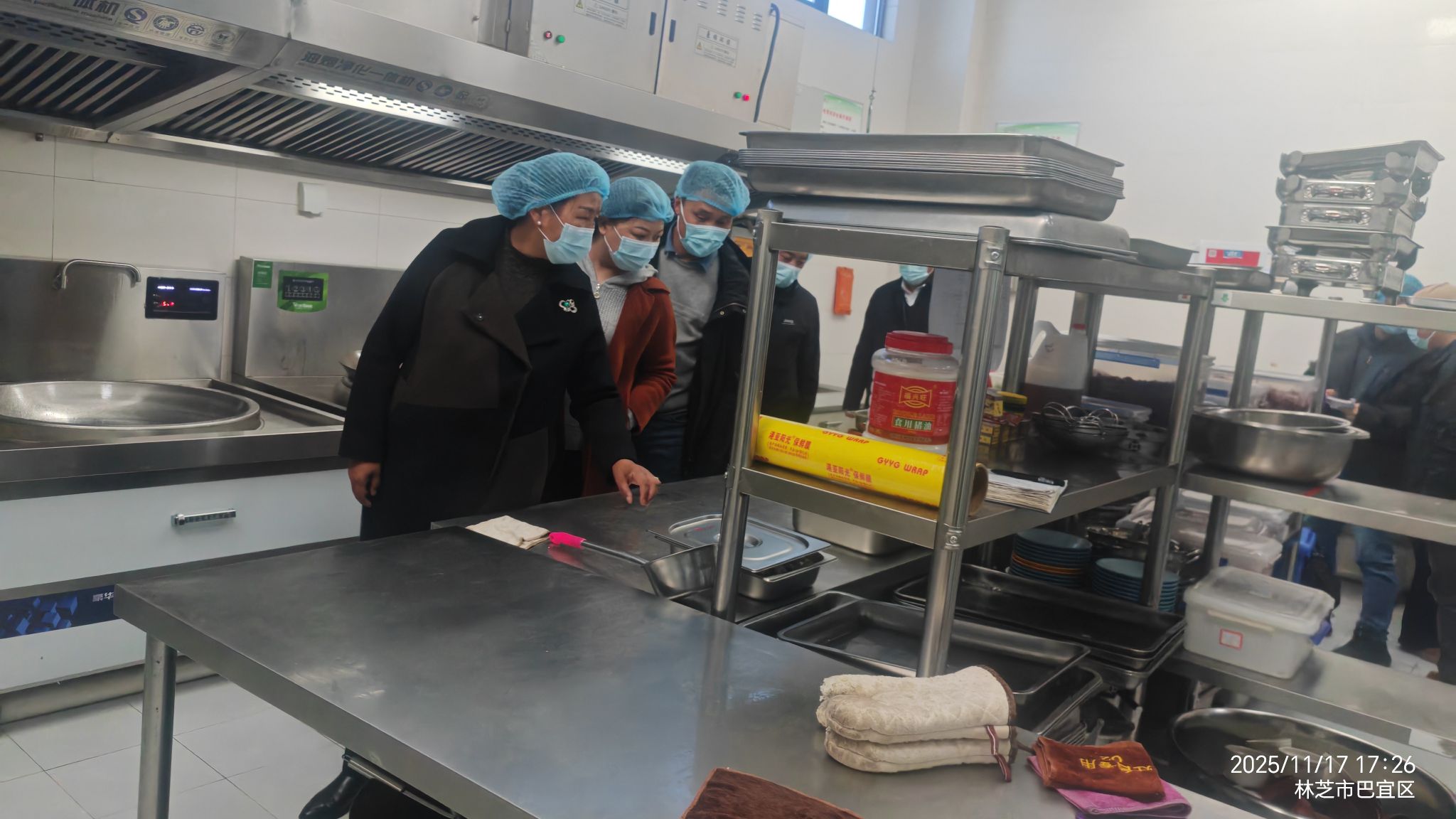 为进一步强化校园食品安全管理,切实保障广大师生的身体健康和饮食安全,11月17日下午,林芝市委常委、副市长、我校食品安全包保责任人玉珍一行到我校检查指导食品安全工作,学校党委委员、副校长曹仲华,林芝市市场监督管理局党组副书记、局长旺旦,学校后勤管理处处长赵长锋等陪同检查指导。