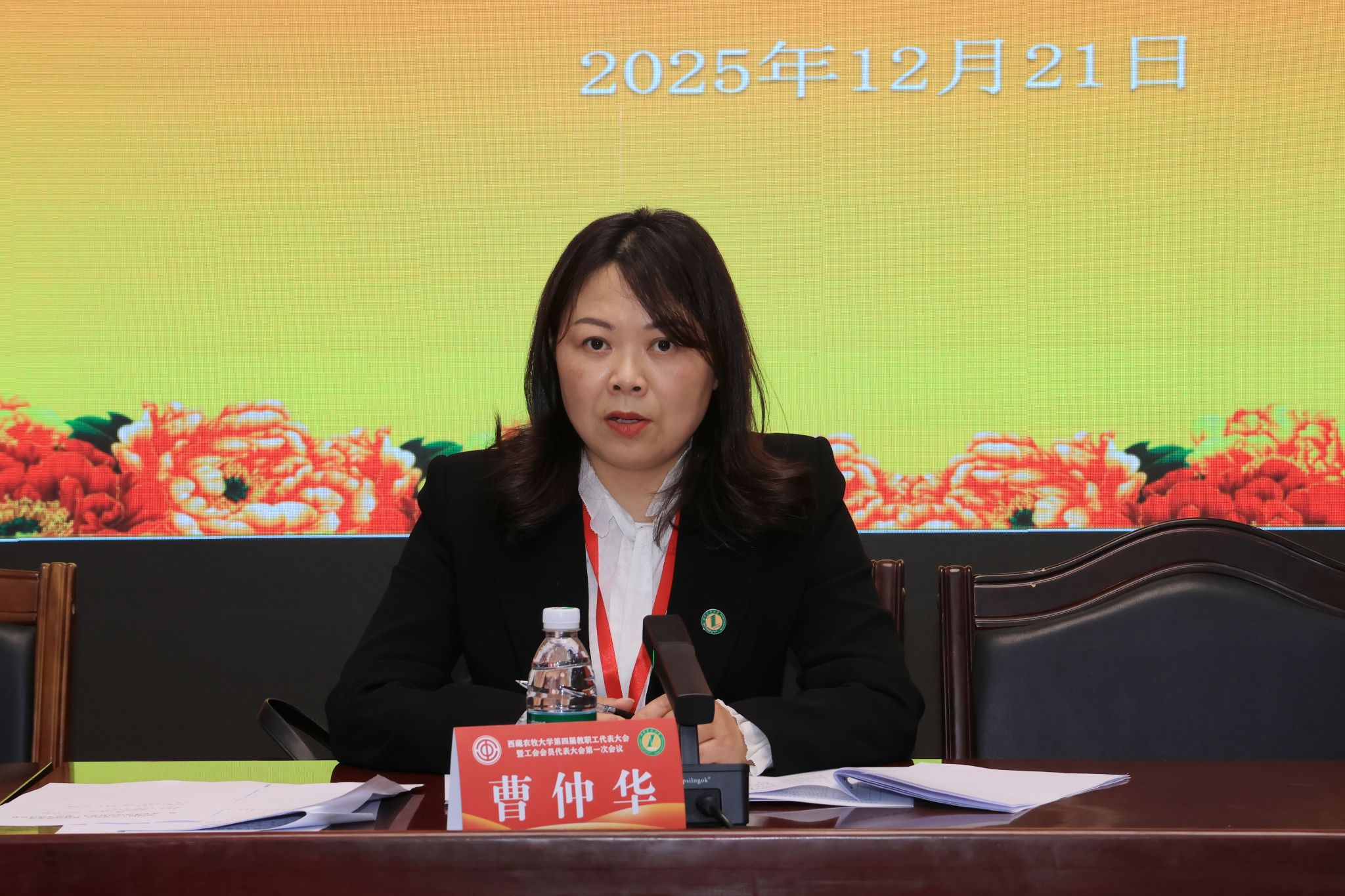 经过选举,曹仲华同志当选为西藏农牧大学第四届工会委员会主席、教代会执委会主任。曹仲华代表新一届工会委员会,向学校党委和全体代表的信任表示最衷心的感谢。她要求全体委员当好教职工的“贴心人”,多做暖人心,聚人心的事情;当好教职工的“牵头人”,不断提高工会凝聚力和向心力;当好教职工的“代言人”,及时将教职工的意见和建议反馈给学校。她表示将与各位委员并肩奋斗,以维护教职工权益为根本,多措并举解决教职工急难愁盼,激发教职工创新活力,助推学校教育事业高质量发展。