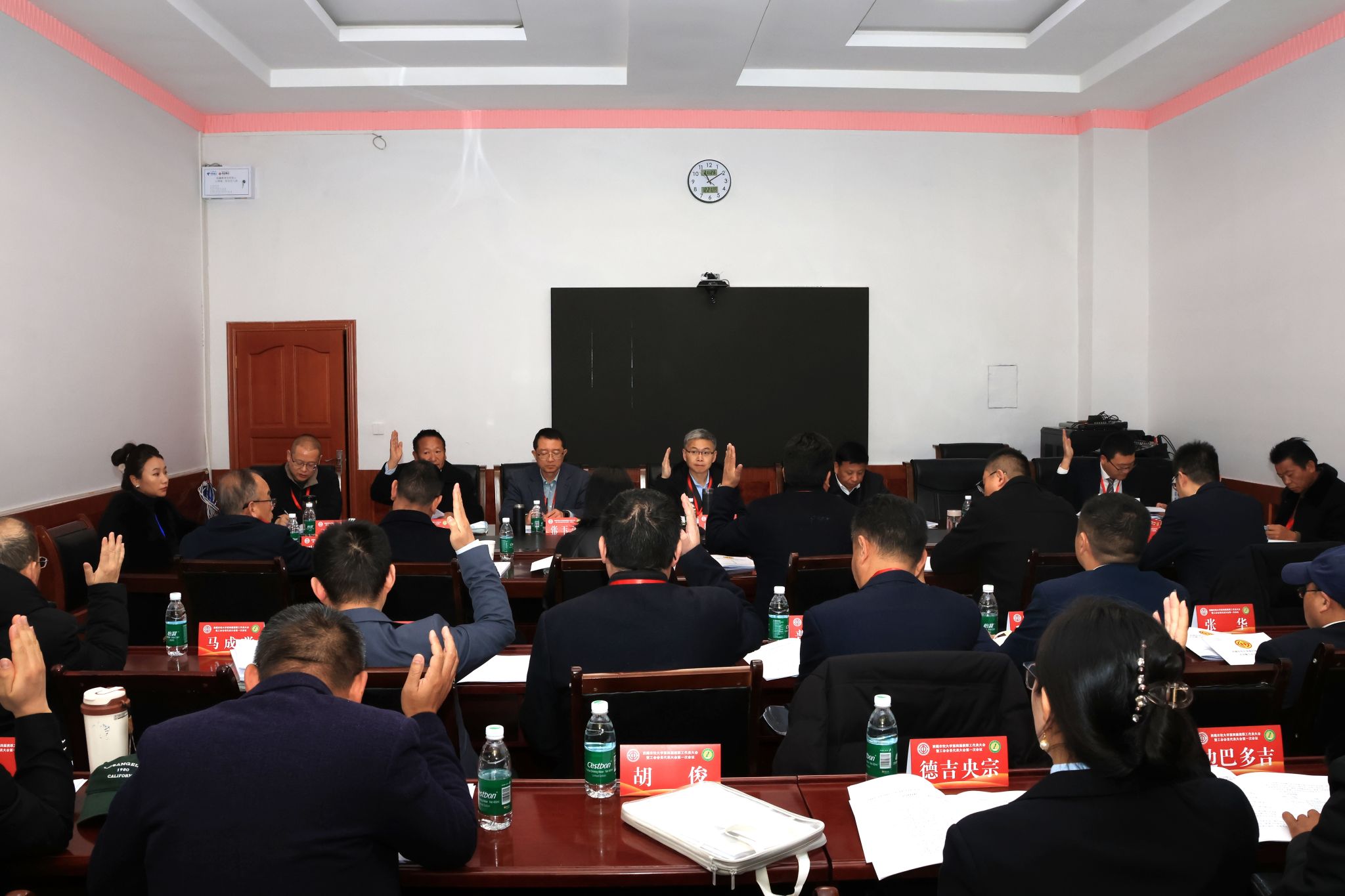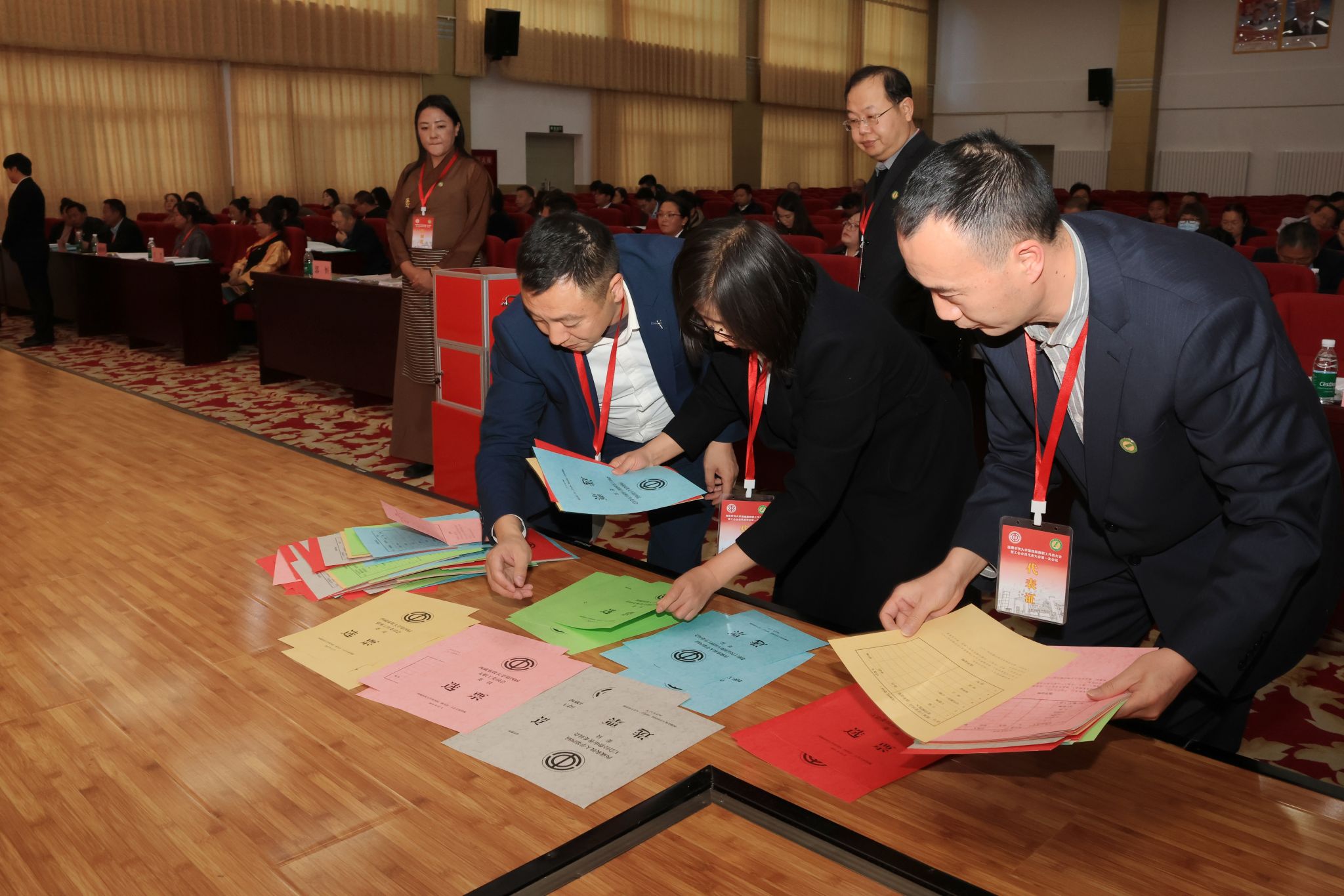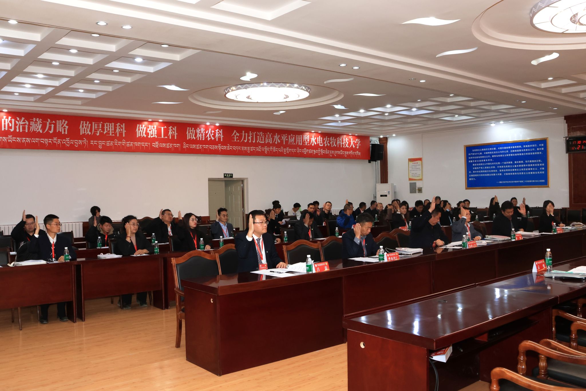 主席团会议后,大会举行了选举,产生了西藏农牧大学第四届工会委员会、教代会执委会、工会经费审查委员会、女职工委员会、提案工作委员会、教职工权益保障与福利工作委员会、劳动人事争议调解委员会委员,通过了大会决议。