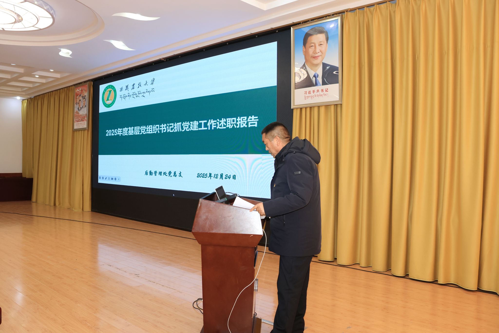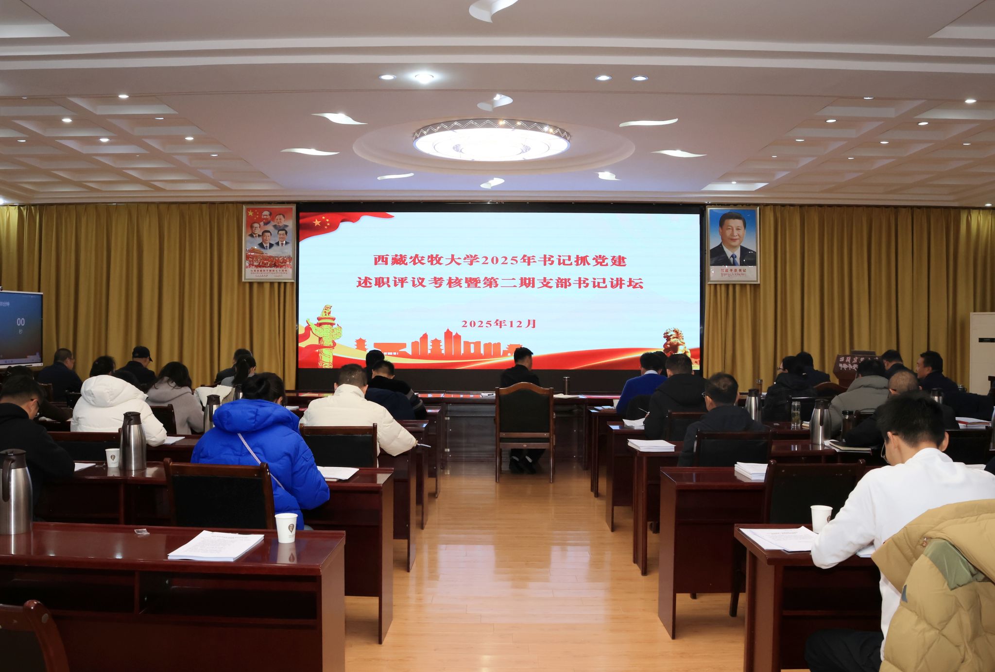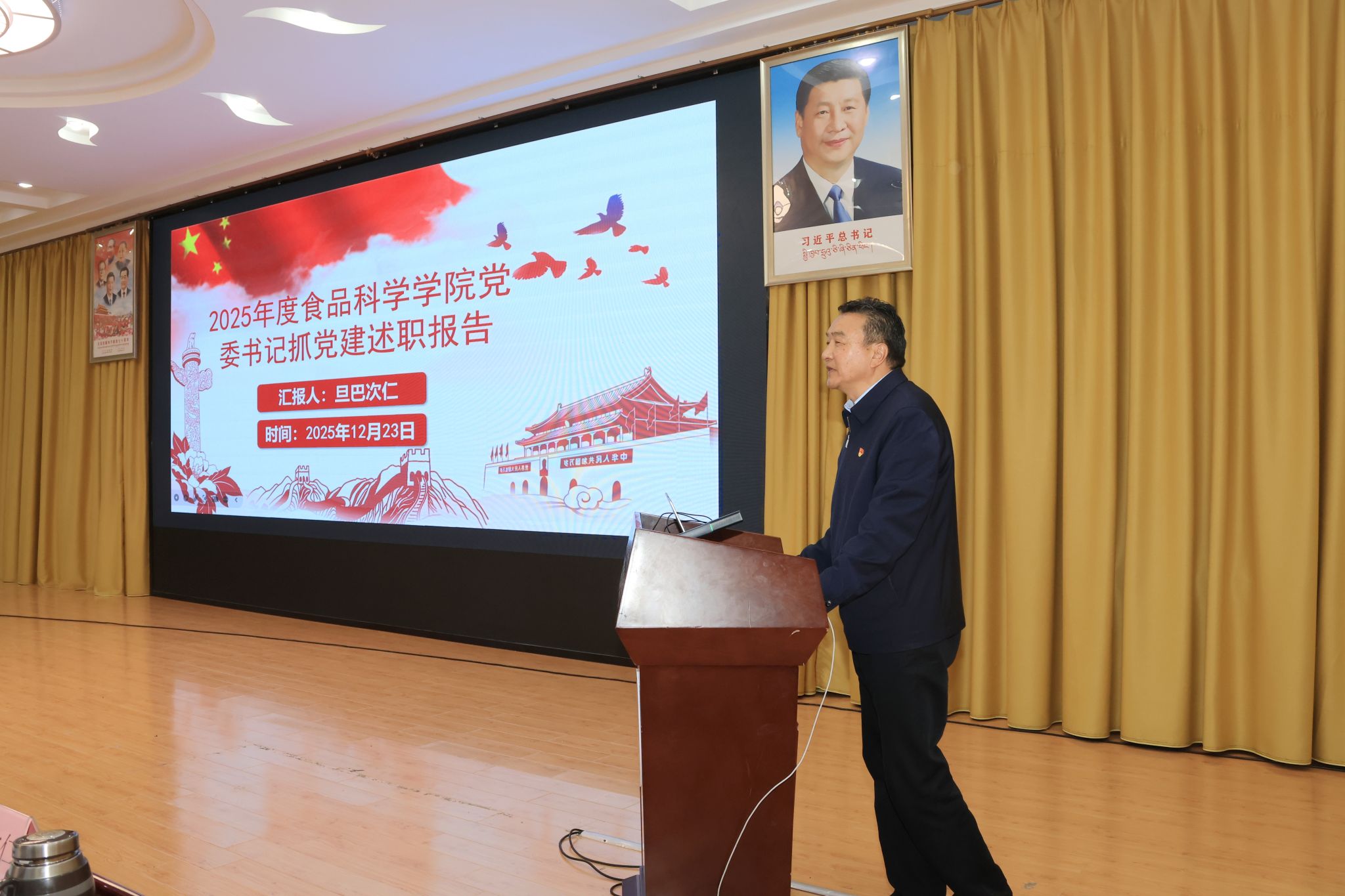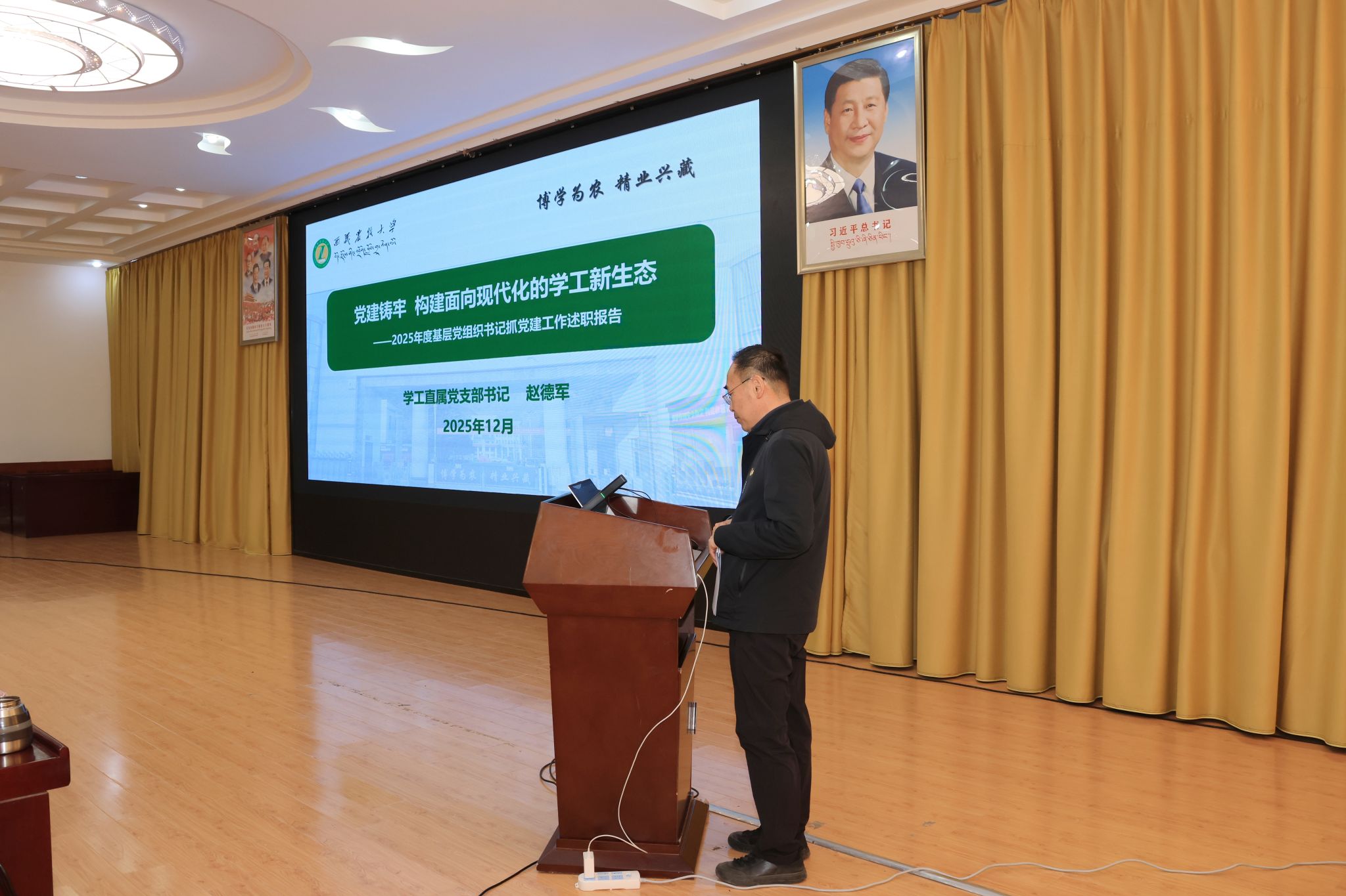 校党委书记、副校长张兴堂主持并作点评讲话。学校党委班子成员、各二级党组织书记及师生党员代表参与活动。会上,全校22个二级党组织书记依次述职和交流经验。张兴堂对各二级党组织年度党建工作给予充分肯定,对进一步提升党建工作质效提出明确要求。强调,要坚持政治铸魂,压实党组织书记“第一责任人”责任及班子成员“一岗双责”,落实“第一议题”制度,持续用习近平新时代中国特色社会主义思想凝心铸魂;要推进一体谋划,结合工作实际,创新思考和完善党建工作机制,丰富党建工作载体和形式,擦亮党建“特色品牌”;要突出作风建设,以严的要求进一步改进作风、狠抓落实,教育引导党员干部坚持自我革命,始终彰显共产党人本色;要深化融合发展,坚持“三融一带”,把党建贯穿业务工作和学校重点工作全过程、全方面、全领域,充分发挥党建强大引领作用。下一步,学校党委将在建立健全高质量党建工作体系、强化顶层设计和任务落实、大抓基层夯实基础、党员发展教育管理服务、党建融合等方面持续下功夫,努力把各级党组织建设得更加坚强有力,实现党建与业务工作互促共进,切实以高质量党建引领学校事业高质量发展。