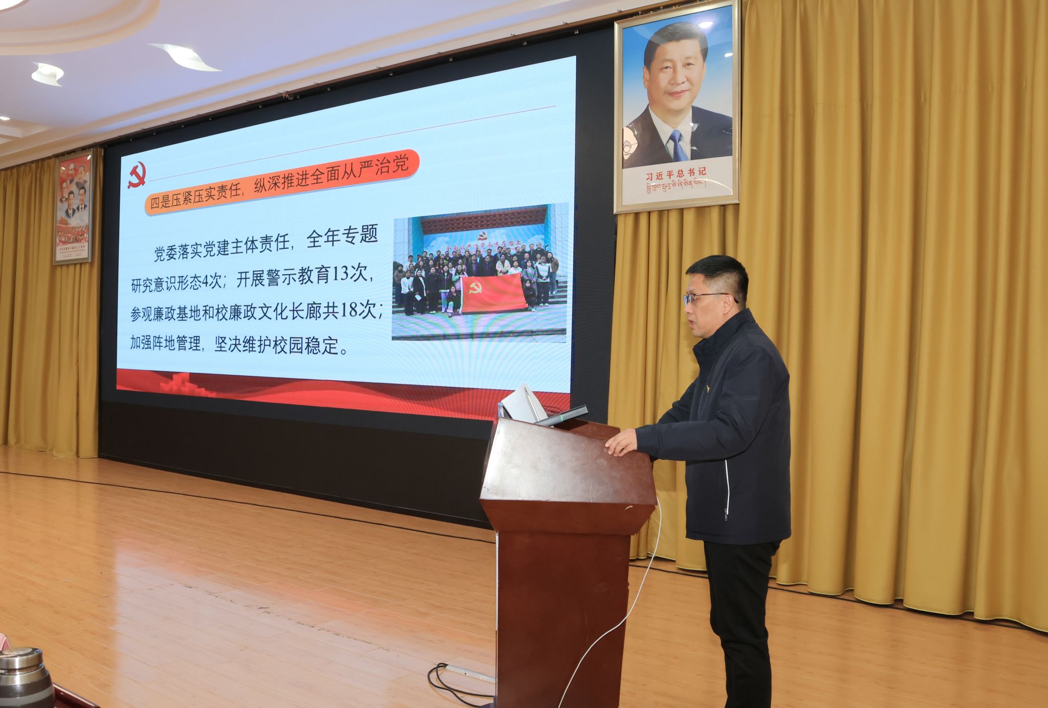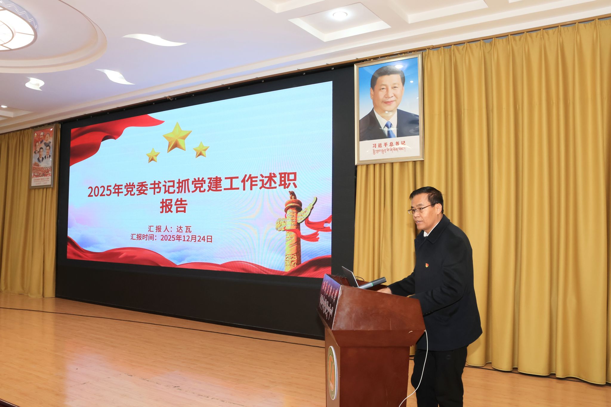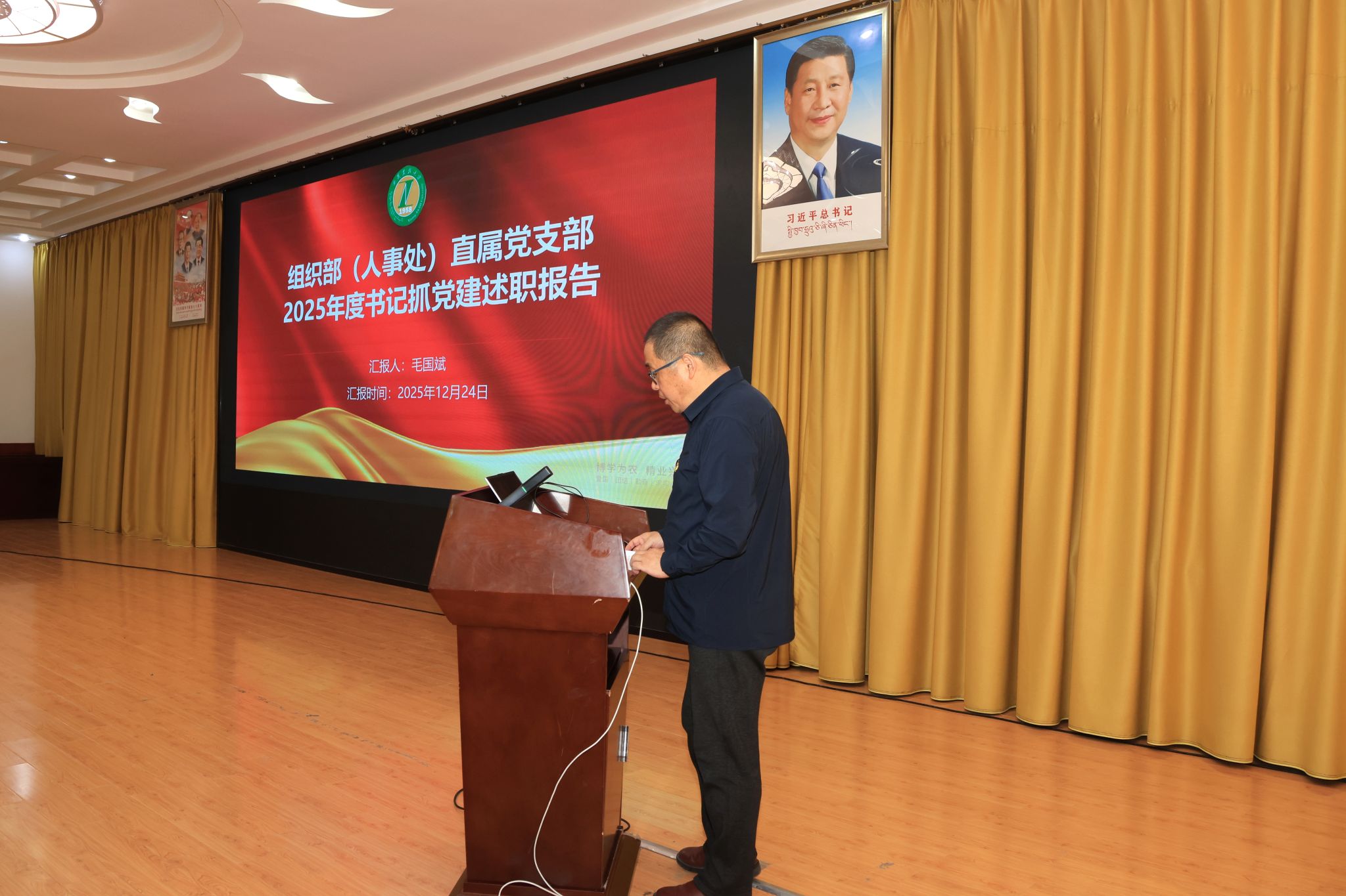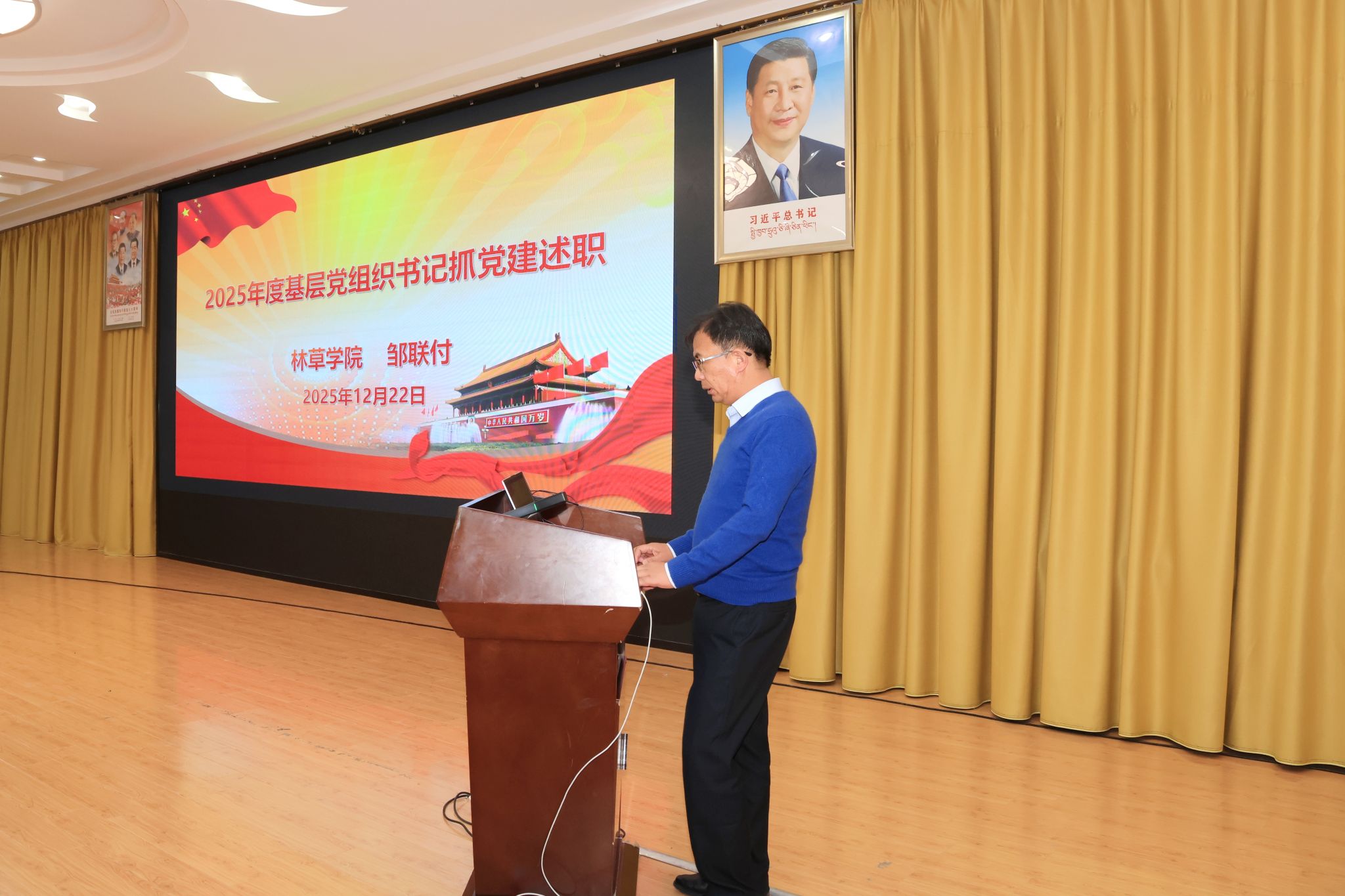 校党委书记、副校长张兴堂主持并作点评讲话。学校党委班子成员、各二级党组织书记及师生党员代表参与活动。会上,全校22个二级党组织书记依次述职和交流经验。张兴堂对各二级党组织年度党建工作给予充分肯定,对进一步提升党建工作质效提出明确要求。强调,要坚持政治铸魂,压实党组织书记“第一责任人”责任及班子成员“一岗双责”,落实“第一议题”制度,持续用习近平新时代中国特色社会主义思想凝心铸魂;要推进一体谋划,结合工作实际,创新思考和完善党建工作机制,丰富党建工作载体和形式,擦亮党建“特色品牌”;要突出作风建设,以严的要求进一步改进作风、狠抓落实,教育引导党员干部坚持自我革命,始终彰显共产党人本色;要深化融合发展,坚持“三融一带”,把党建贯穿业务工作和学校重点工作全过程、全方面、全领域,充分发挥党建强大引领作用。下一步,学校党委将在建立健全高质量党建工作体系、强化顶层设计和任务落实、大抓基层夯实基础、党员发展教育管理服务、党建融合等方面持续下功夫,努力把各级党组织建设得更加坚强有力,实现党建与业务工作互促共进,切实以高质量党建引领学校事业高质量发展。