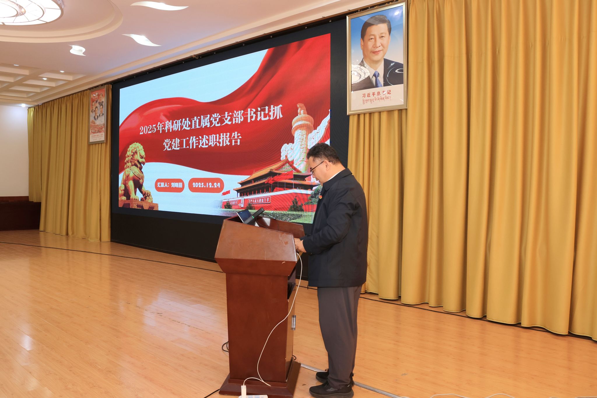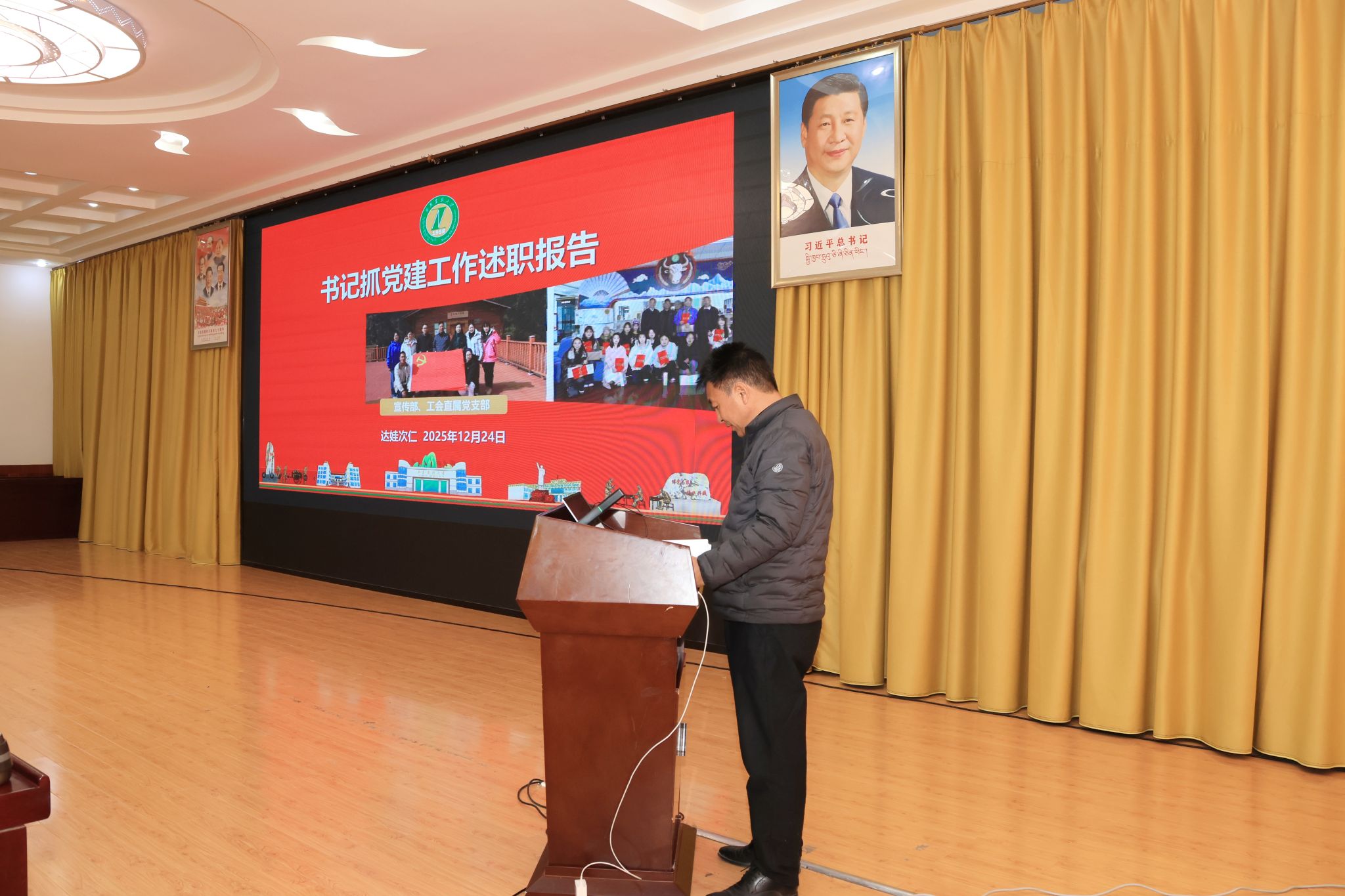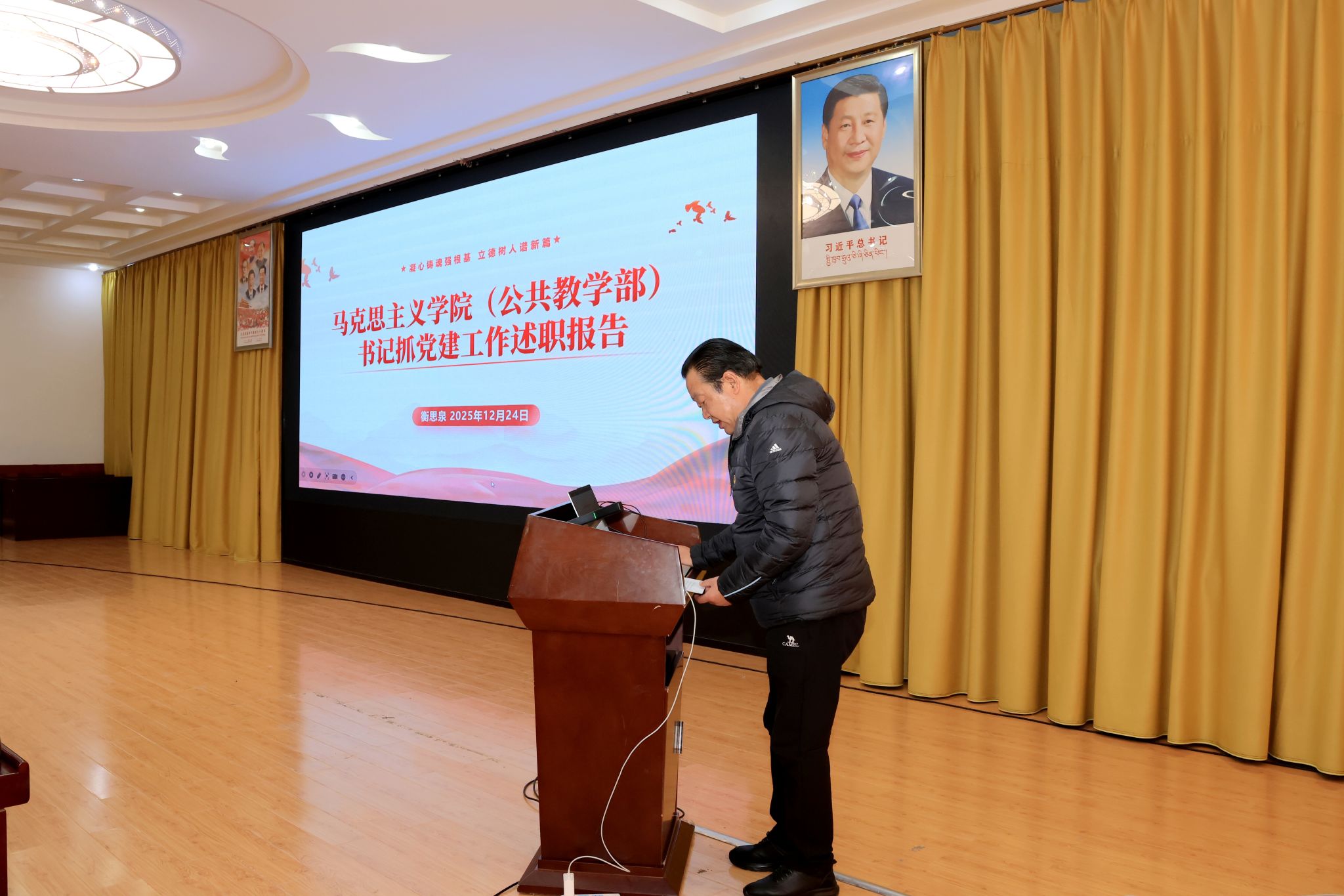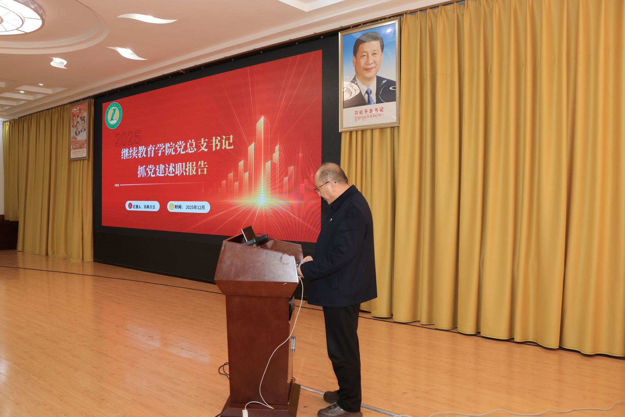 校党委书记、副校长张兴堂主持并作点评讲话。学校党委班子成员、各二级党组织书记及师生党员代表参与活动。会上,全校22个二级党组织书记依次述职和交流经验。张兴堂对各二级党组织年度党建工作给予充分肯定,对进一步提升党建工作质效提出明确要求。强调,要坚持政治铸魂,压实党组织书记“第一责任人”责任及班子成员“一岗双责”,落实“第一议题”制度,持续用习近平新时代中国特色社会主义思想凝心铸魂;要推进一体谋划,结合工作实际,创新思考和完善党建工作机制,丰富党建工作载体和形式,擦亮党建“特色品牌”;要突出作风建设,以严的要求进一步改进作风、狠抓落实,教育引导党员干部坚持自我革命,始终彰显共产党人本色;要深化融合发展,坚持“三融一带”,把党建贯穿业务工作和学校重点工作全过程、全方面、全领域,充分发挥党建强大引领作用。下一步,学校党委将在建立健全高质量党建工作体系、强化顶层设计和任务落实、大抓基层夯实基础、党员发展教育管理服务、党建融合等方面持续下功夫,努力把各级党组织建设得更加坚强有力,实现党建与业务工作互促共进,切实以高质量党建引领学校事业高质量发展。