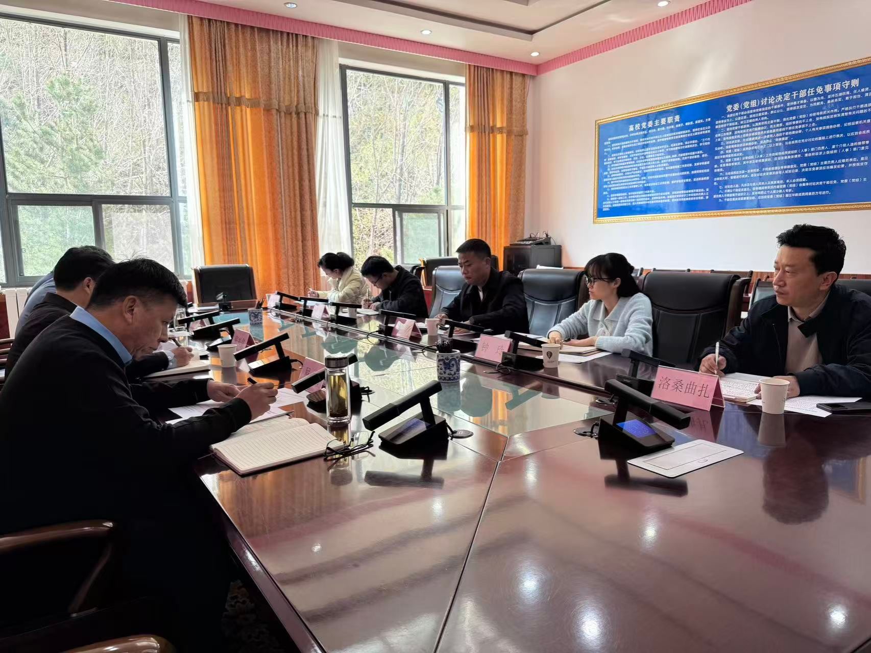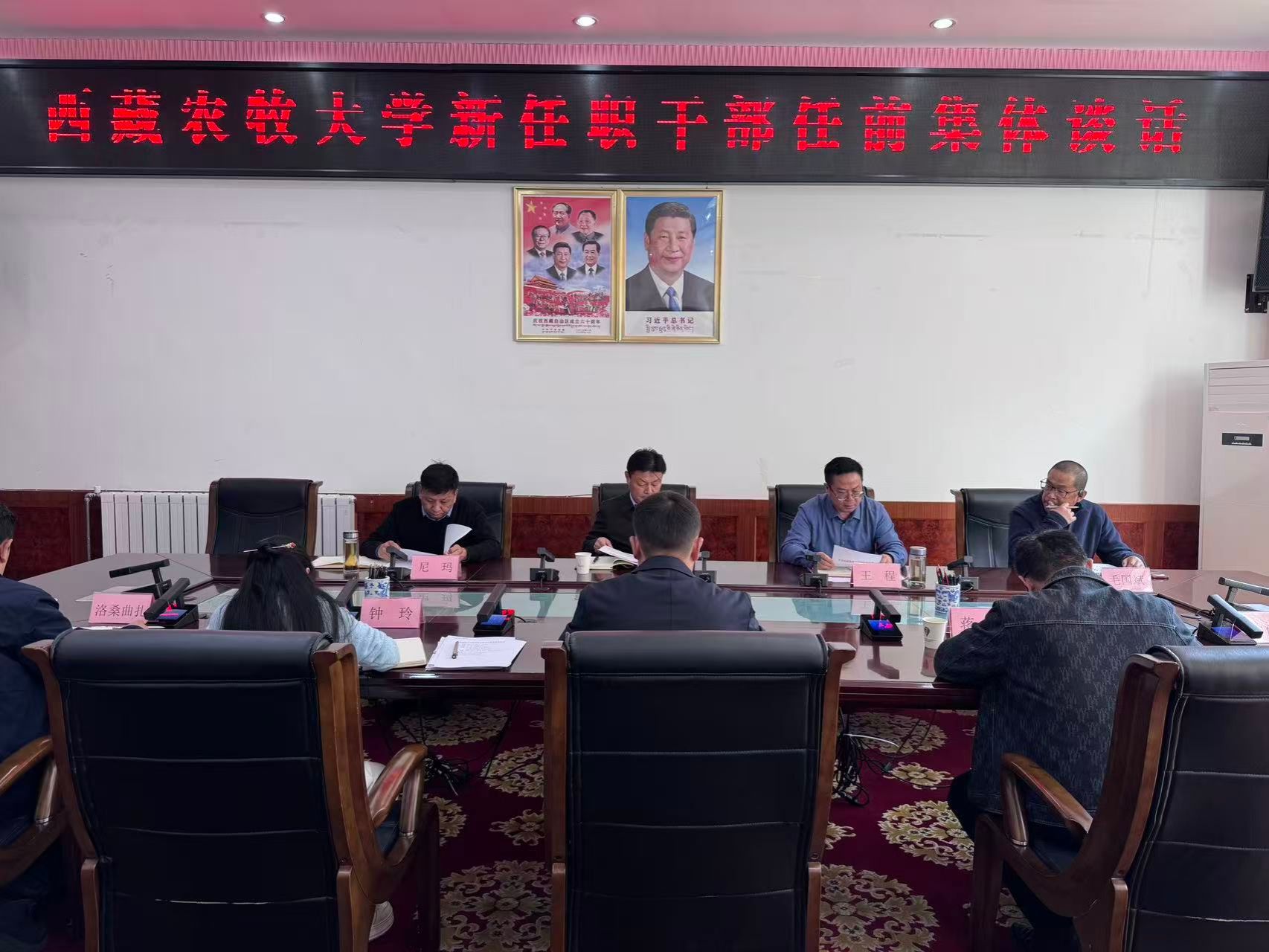 会议由党委副书记王程主持,党委委员、纪委书记、自治区监委驻西藏农牧大学监察专员尼玛作任前廉政教育,党委委员、党委组织部(人事处)部(处)长毛国斌出席会议。