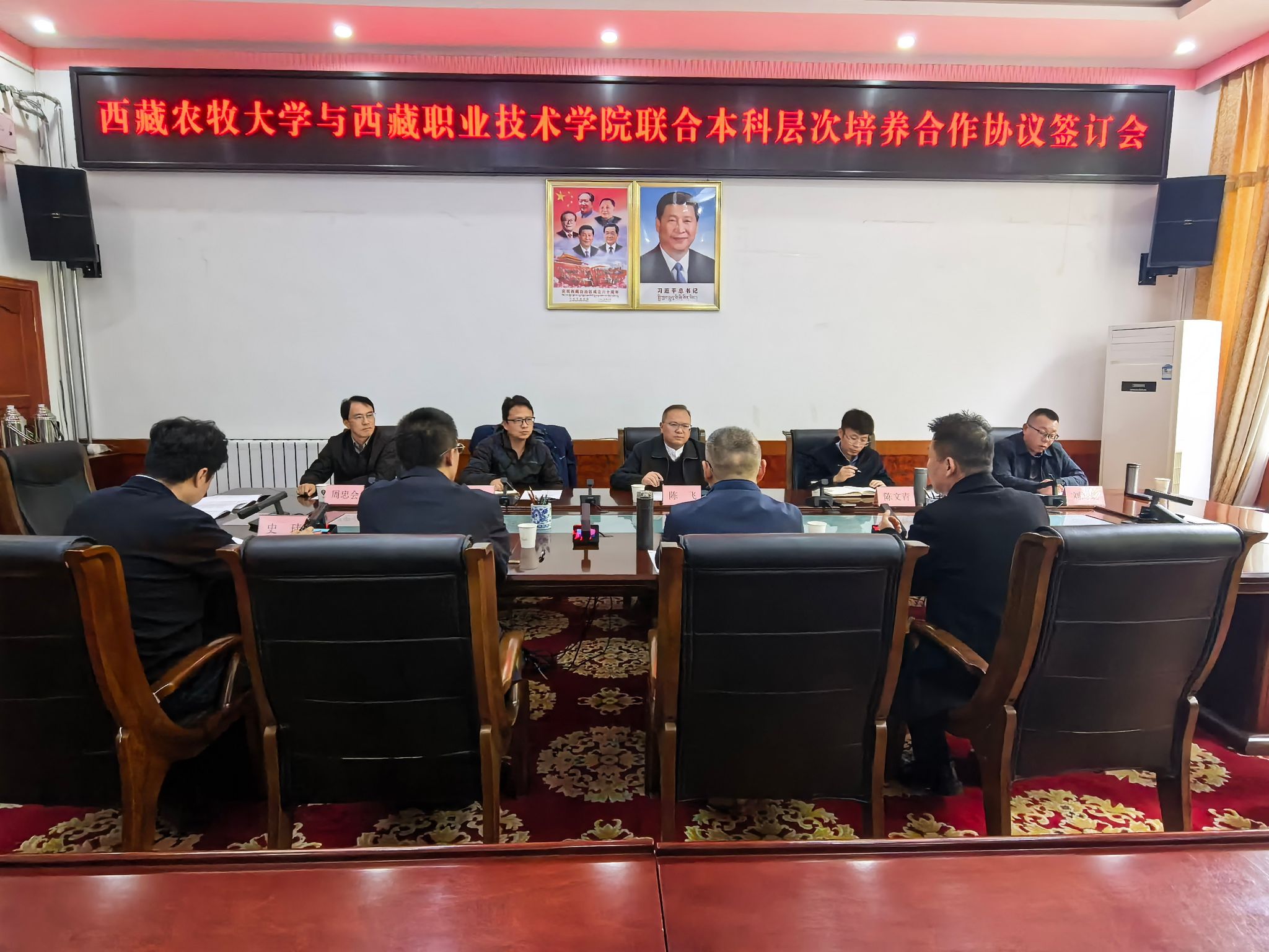 2026年4月9日,西藏农牧大学与西藏职业技术学院联合本科层次人才培养合作协议签订会在一号行政楼三楼党政会议室举行。西藏农牧大学党委委员、副校长邢震,西藏职业技术学院党委副书记、院长陈飞出席会议,两校相关部门及二级学院负责人参加会议。会议由西藏农牧大学教务处处长张永青主持。