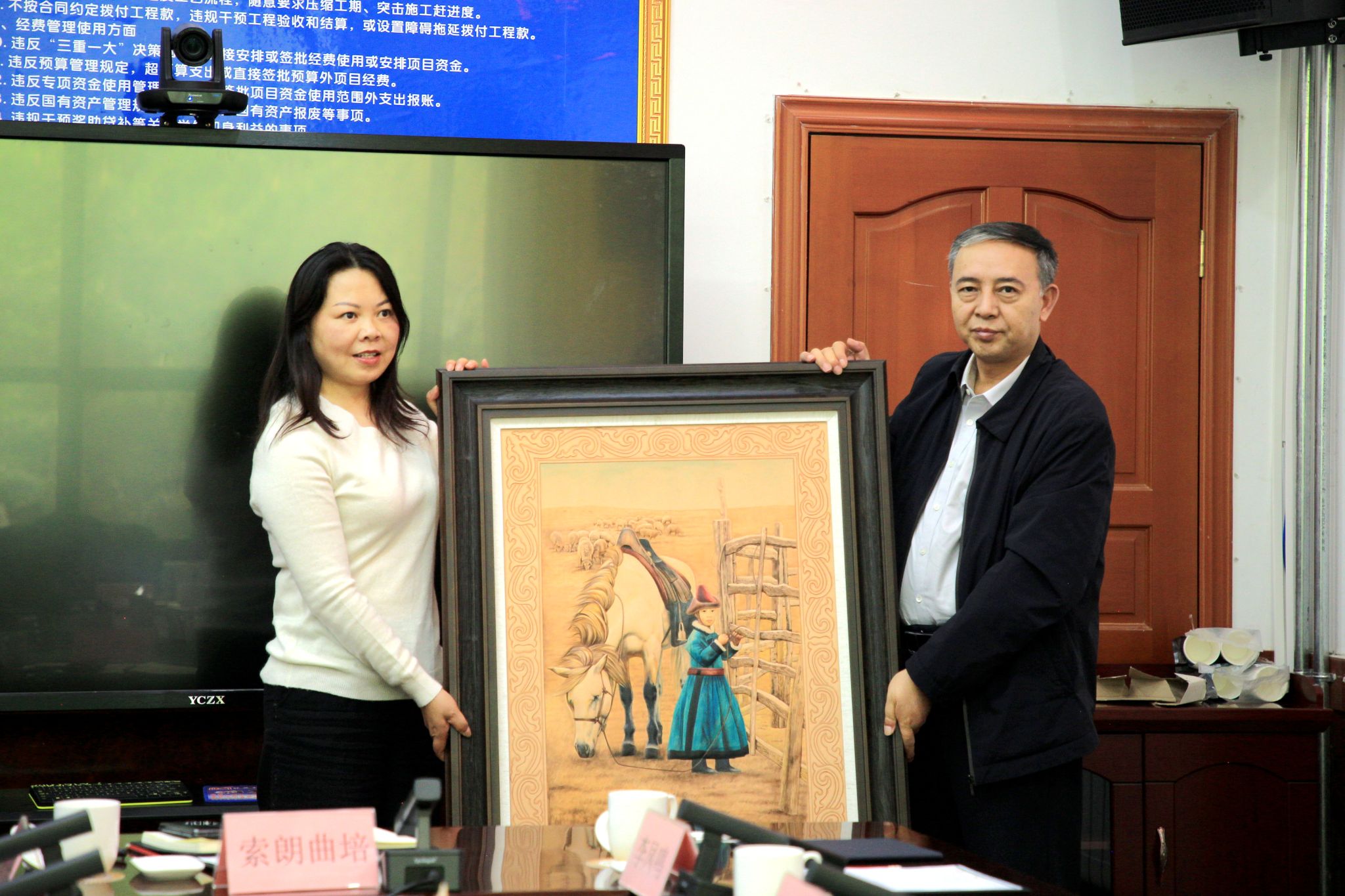 曹仲华代表学校党委、行政对左合君一行的到来表示欢迎,并从办学历史、学科建设、人才培养、社会服务等方面介绍了学校基本情况。指出,学校始终坚守教育戍边、教育稳藏、教育兴藏初心使命,聚焦“四件大事”、聚力“四个创建”,扎根西藏大地办学育人,形成了鲜明的办学特色和深厚的办学积淀。她指出,内蒙古农业大学在畜牧兽医、草原科学、农牧业成果转化等领域具有深厚的学科底蕴和丰富的实践经验,希望以此次交流为契机,构建常态化合作交流机制,在学科共建、科研协同、人才联培、成果转化等方面开展合作,共同服务边疆地区农牧业现代化建设。