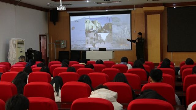 为弘扬爱国主义精神、普及国防教育,12月15日,学生工作处邀请陆军炮兵防空兵学院郑州校区军政训练系部队管理教研室教员王春新、吴伟飞两位同志来我校开展国防教育主题讲座。我校军事理论课程授课教师、70名学生参加,讲座由学生工作处处长赵德军主持。
