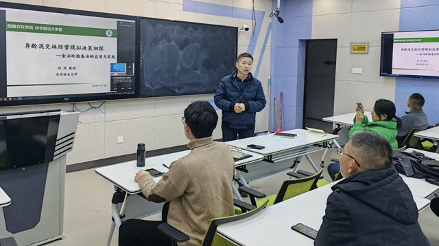 11月22日晚向玮教授作题为《异龄混交林经营模拟决策初探——金沟岭检查法的应用与实践》的报告,根据研究团队在金沟岭林区的具体实践,从异龄混交林经营管理、智慧林业、模型构建与改进等角度做了介绍。11月27日晚王佳教授作题为《森林碳汇监测与计量研究进展》的报告,从森林碳汇监测方法体系、模型预测以及未来研究展望等角度进行了汇报。11月29日晚蒋细旺教授作题为《功能菊花种质资源传承与功效产品研发》的报告,主要结合自己多年来在菊花产学研结合方面的经验和实践,从功能菊花种质资源、功能菊花产品开发途径、藏药开发建议等方面进行了介绍。师生认真聆听每场报告,并积极向作报告的教授请教相关问题,系列学术报告在师生中引起强烈反响。