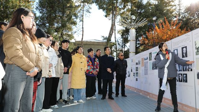 11月10日上午,由上海交通大学和西藏农牧学院共同举办的“科教兴国 开创未来—— ‘两弹一星’功勋科学家杨嘉墀院士专题展”在西藏农牧学院图书馆广场举行。西藏农牧学院党委副书记、副院长苏大鹏致辞,上海交通大学档案文博管理中心党总支书记万晓玲介绍展览布局相关情况,西藏农牧学院研究生处处长杨升、西藏农牧学院学生工作处副处长 杨建军、洛桑云旦及图书馆副馆长唐兰参加仪式并参观图片展。