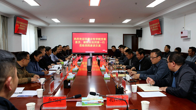11月8日、10日,西藏农牧学院党委委员、副院长巩同梁带队先后赴自治区农牧科学院、自治区农业农村厅开展座谈交流。自治区农业农村厅党组成员、副厅长、一级巡视员肖长伟,自治区农牧科学院党组成员、副院长杨勇分别出席。自治区农牧科学院相关处室和研究所、自治区农业农村厅相关处室(中心、站)、西藏农牧学院相关职能部门及二级学院(部)同志参加。