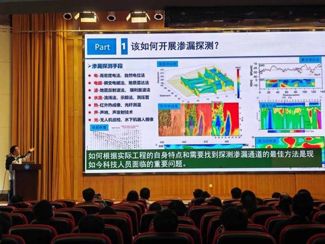 与会期间,我校陈亮教授结合西藏高原实际工程,提出在极端气候条件下、复杂地质条件等特殊情况下如何开展土石坝的险情识别与健康诊断,针对如何就复杂条件下的水工建筑物渗漏探测、堤坝渗漏通道精准定位的技术与方法建言献策。水利土木工程学院研究生李志华、陈利轩在学术交流会上也分享了青藏高原特殊地理环境条件下水工建筑物可能存在的健康问题。
