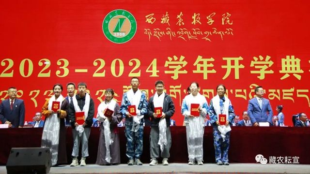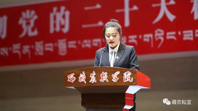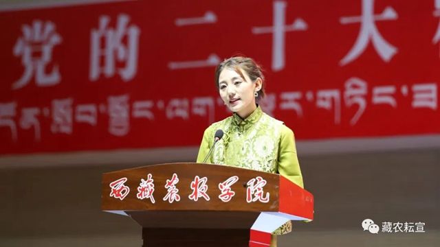 动物科学学院学生斯秋旺姆、资源与环境学院学生焦婉婷、水利土木工程学院学生次仁罗布、植物科学学院老师岳海梅分别作为在校学生代表、研究生新生代表、本科新生代表和教师代表在典礼上发言。