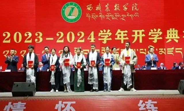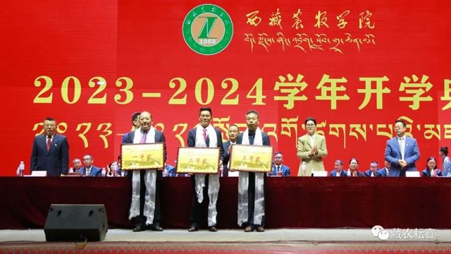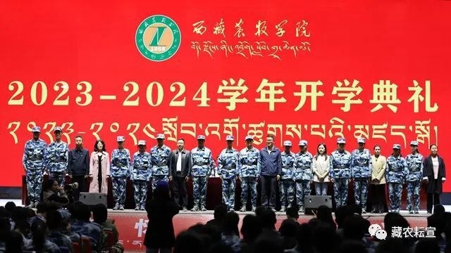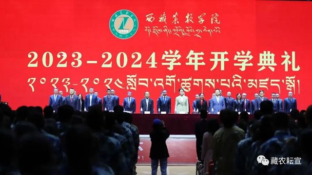 9月8日上午,学校在文体馆隆重举行2023—2024学年开学典礼。校党委书记、副院长娄源冰,党委副书记、院长强巴央宗,党委副书记、副院长苏大鹏,党委副书记王程,副院长郑维列,党委委员、副院长巩同梁出席了典礼。各单位各部门主要负责同志、教职工和在校生代表以及2023级全体新生参加了典礼。