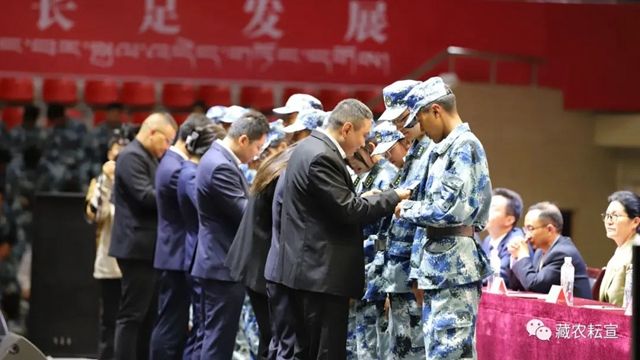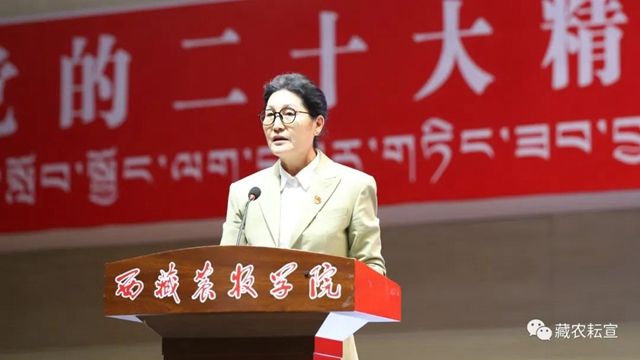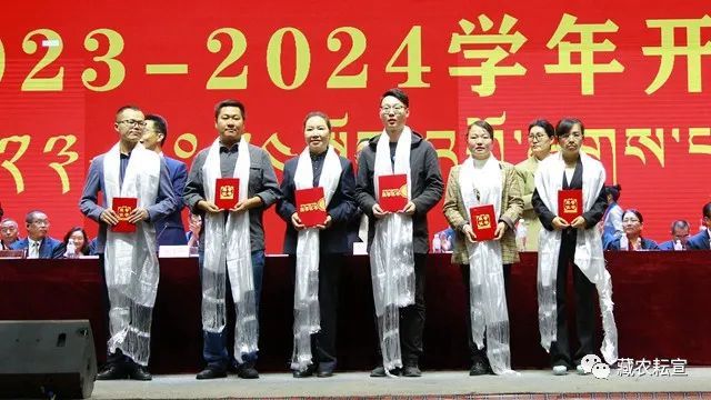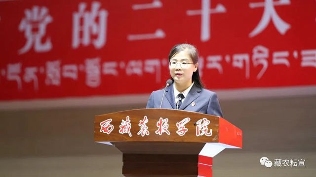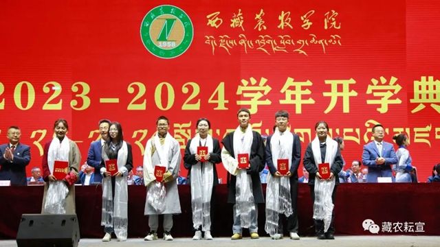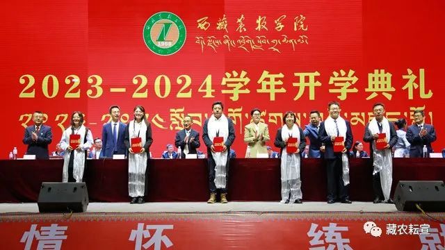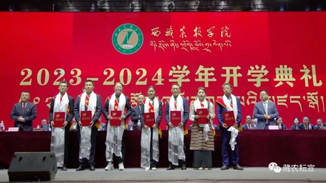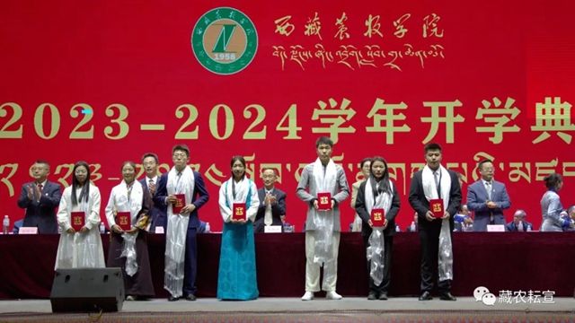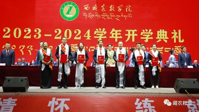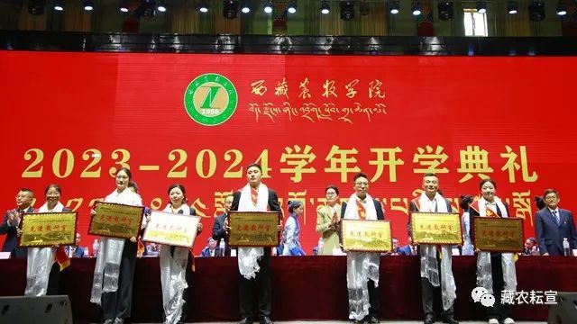强巴央宗代表学校党委、行政作了讲话。她首先向2023级新同学表示热烈的欢迎,在第39个教师节来临之际并向全校教师和教育工作者致以节日问候,向受到表彰的先进集体和优秀个人表示衷心的祝贺。她向广大新生介绍了学校的办学历史和办学成就,围绕学习贯彻习近平总书记今年五月给中国农业大学科技小院的同学们的重要回信、自治区党委王君正书记今年“五四”青年节莅临我校看望青年学生和青年工作者时的讲话精神,从“坚守民族团结,不断铸牢中华民族共同体意识;坚定信仰信念,自觉将青春理想融入时代大潮;坚持全面发展,在学习和实践中提升综合素质;坚决遵规守纪,增强自我管理和自我约束能力”四个方面,对同学们提出了殷切希望和具体要求。对于同学们走好今后的人生道路具有重要的启发意义。希望同学们切实把讲话精神落实到学习和生活中去,不断提升自我、完善自我,努力成长为德智体美劳全面发展的社会主义建设者和接班人,为创造更加美好的未来贡献力量!