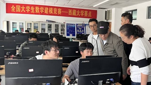 最后,在多布杰主任的带领下,到2023年全国大学生数学建模竞赛西藏大学竞赛现场进行了观看。与会教师咨询了学生们的选题以及目前进展情况。