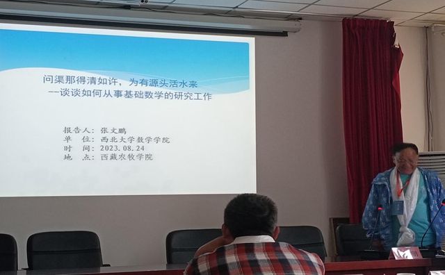 在西北大学二级教授张文鹏作的《问渠那得清如许,为有源头活水来:谈如何从事数学基础研究工作》的报告中,张老师结合自己年轻时的亲身工作经历,给出了很多好的科研建议,为大家传经送宝,语言风趣幽默,会场多次响起热烈掌声。