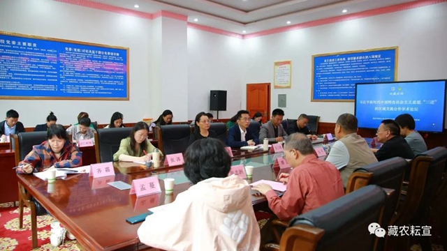学术论坛在行政楼党政会议室召开。西藏农牧学院党委副书记、副院长苏大鹏出席,党委宣传部部长达娃次仁主持,北京市习近平新时代中国特色社会主义思想研究中心北京外国语大学研究基地专家学者,西藏农牧学院部分专兼职思政课教师参加论坛。