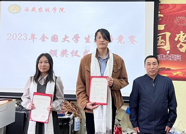 学校教学督导委员会黎普明主任、公共教学部杨玉田主任和达红旗副主任分别为获得全国特等奖、全国一等奖、全国二等奖、全国三等奖的同学颁发获奖证书,并集体合影留念。
