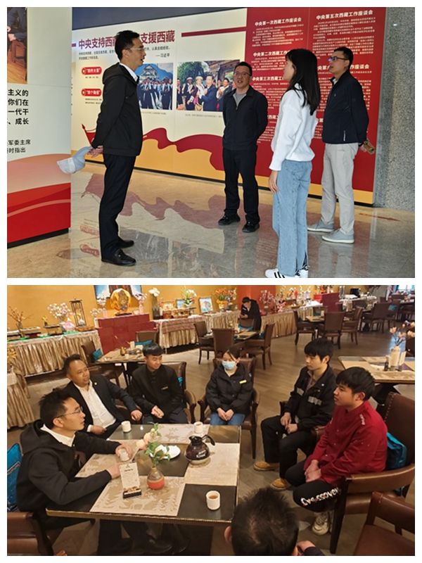 调研最后,苏大鹏前往援藏干部纪念馆参观学习,随后看望了在鲁朗实习的学生,并与其进行亲切的交谈,了解他们的工作和生活情况,转达学校党委和行政的关心和关怀,并对其未来职业规划进行指导。