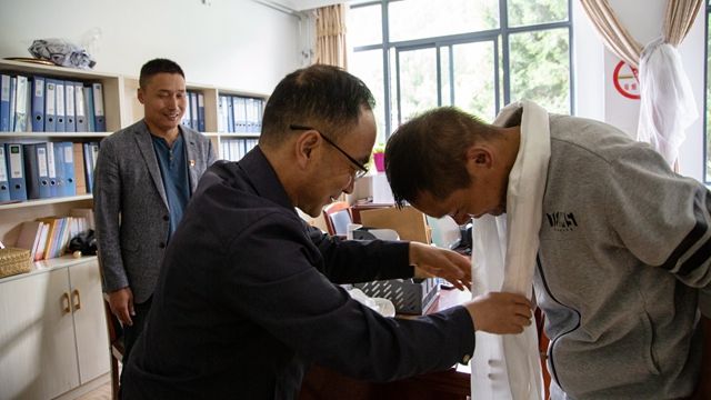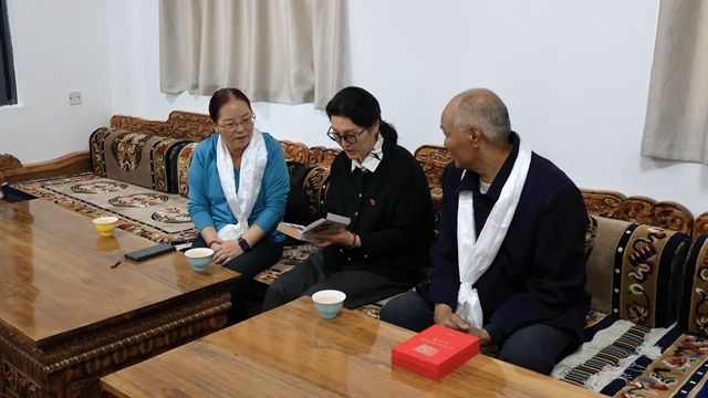强巴央宗在走访慰问光荣在党50年纪念章获得者、离退休老党员时,详细了解他们的身体状况和生活情况,传达党组织的深切关怀和温暖,对他们长期以来为学校改革稳定发展作出的贡献表示感谢,赞赏他们老骥伏枥、志在千里,希望他们继续为学校高质量发展建言献策、贡献力量,祝福老党员们身体健康、生活幸福。