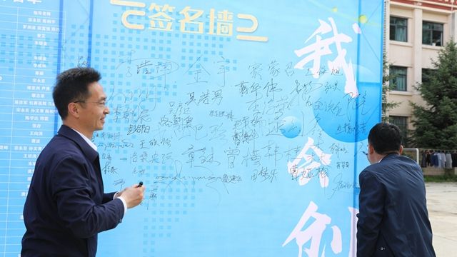 开幕式结束后,学校领导、评审专家和参赛学生在签名墙上签字并留影纪念。