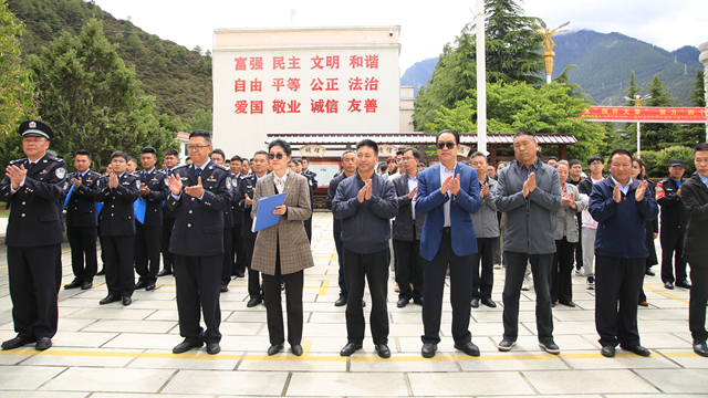 6月13日下午,我校举行自治区公安机关与西藏农牧学院校警联合服务中心、网安警务室揭牌仪式。学院党委副书记、院长娄源冰,林芝市公安局党委委员、副局长张玉生,西藏自治区公安厅网安总队副总队长旦增楚成出席仪式,全区各地市网安部门干警,学院相关单位主要负责人、院安全保卫处全体职工、部分学生代表等参加仪式。