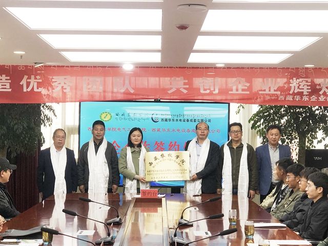 双方在围绕合作框架协议主题进行充分讨论,并就学生培养等方面达成共识后,李朝霞院长、朱广武作为代表签署了合作协议,标志着电气工程学院与西藏华东水电设备成套有限公司正式建立了校企合作。随后,企业授合作牌匾并接牌。
