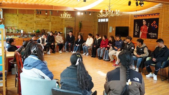 日暮时分,研学团师生围坐一堂,进行了座谈分享。两校师生纷纷结合自身的经历,分享这两天的感受和思考,以及对西藏建设、乡村振兴的理解和感悟。