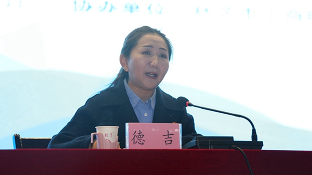 会议由自治区工商联党组成员、副主席、秘书长德吉主持,自治区党委统战部副部长、工商联党组书记王念东、自治区教育厅党组成员副厅长巴桑卓玛、自治区人社厅就业服务中心党总支书记黄世鸿、共青团西藏自治区委员会副书记达瓦次仁、林芝市工商联党组成员副主席郑俊凡、学校党委副书记副院长苏大鹏同志出席此次会议。