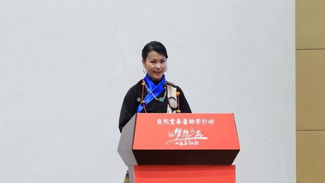 我院受助女大学生德吉曲珍代表全体受助女大学生作了发言,她真情地说:“‘自然堂春蕾助学行动’助学金帮助了我们这些家境贫寒的孩子们,把曙光和希望带到了我们身旁,让我们可以不用担心经济条件顺利完成学业,用知识来改变未来的人生道路。”她说“虽然我们的生活是不幸的,但是我们却又是无比幸运的,一路走来,感谢党和政府,感谢各级妇联组织,感谢上海伽蓝集体有限公司的资助,也感谢学院党委、行政和老师、同学们的帮助与支持,往后的日子里一定会继续好好学习,将来走向社会绝不会忘了这份济困之情。完成学业后,一定效法这种义举,回报社会,就像奥运圣火一样,从你们手中接过爱的接力棒,一定会把这份爱的火焰传递下去,传递给每个人,让人间处处都是爱。”