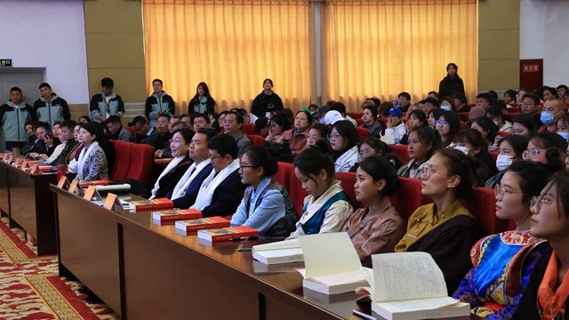 随后,强巴央宗副院长与朱东云秘书长、段刚辉副市长、康辉老师、李国英部长、陈娟玲博士一起共同为“春蕾女生”发放了助学金并赠送了书籍“习近平走进百姓家”。