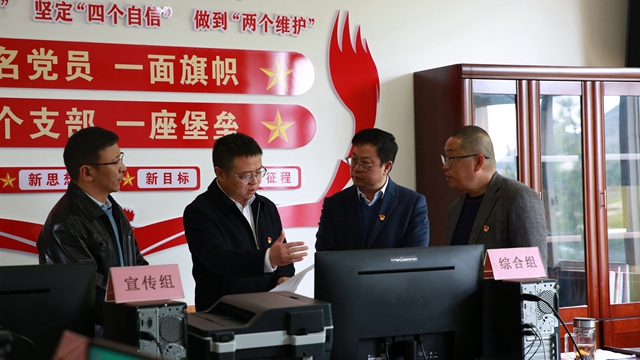 在学校党委主题教育领导小组办公室,张军查看主题教育专题网站、工作简报、学习书籍、工作台账等,了解各级各类人员开展主题教育方式方法,看望领导小组办公室工作人员。指出,要关心关注离退休党支部、学生党支部主题教育工作开展情况,与思想政治教育结合起来,与群团组织活动结合起来,与学校重点工作结合起来,确保全覆盖、有实效。要求在区党委规定动作基础上丰富自选动作,注重阶段性成果;落实党委读书班学习制度,发挥好党委班子引领示范作用;严格审核发布的各类信息,确保内容严谨准确。