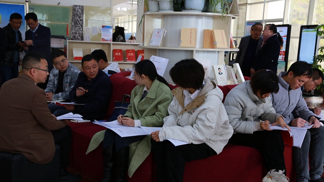 区党委主题教育第十一巡回指导组成员拉巴扎西,学校相关二级学院、职能部门人员陪同。