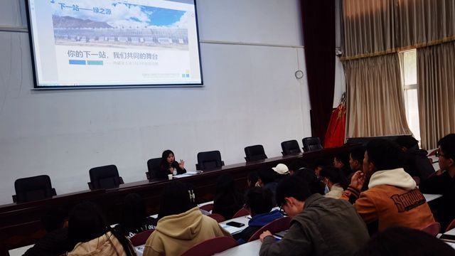 上午的校园宣讲和招聘会在学校2107教室举行,达瓦代表学院向企业的社会担当、为同学们带来实习和就业机会表达了由衷谢意,鼓励动员毕业生们珍惜机会、积极主动去实现个人就业;接着,企业负责人喻莹借助PPT向大家作了校园宣讲,详细介绍了企业基本情况、员工管理和发展、薪资待遇和工作性质,并与同学们互动交流,解答了大家的问题;最后,现场受理毕业生自愿递交的个人简历,收到了近80余名毕业生的求职简历。
