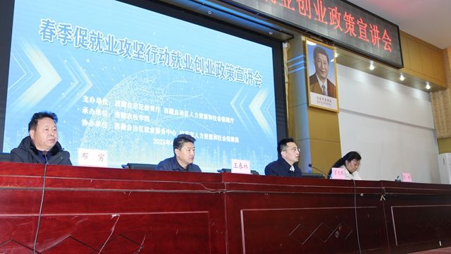 为深入学习贯彻习近平总书记关于就业工作的重要论述,认真贯彻落实党的二十大、自治区党委第十次党代会精神和王君正书记关于做好高校毕业生就业工作的指示批示,抢抓春季开学促就业工作关键期,广泛深入提供就业指导服务, 4月3日-4日,我校通过“请进来”的方式邀请自治区人社厅、教育厅联合开展“春季促就业攻坚行动”就业创业政策宣讲暨校园招聘活动。