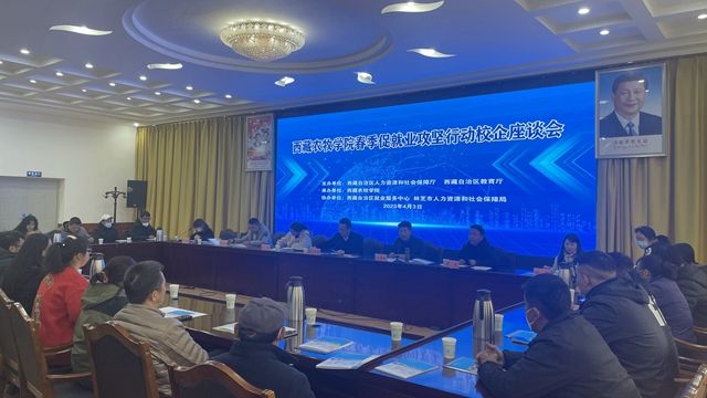 4月3日下午,学校召开了春季促就业攻坚行动校企座谈会,会议由自治区就业服务中心与创业服务处处长王春林主持,学校党委副书记、副校长苏大鹏介绍了学校的办学历程和专业设置、2023届毕业生基本情况,西藏岷山集团负责人代表企业方进行了表态发言。王春林要求企业要认真履行社会责任,想方设法吸纳我区高校毕业生,在储备人才、发展人才上下功夫,与高校协同发力,为促进我区高校毕业生实现高质量充分就业做出自己的贡献。