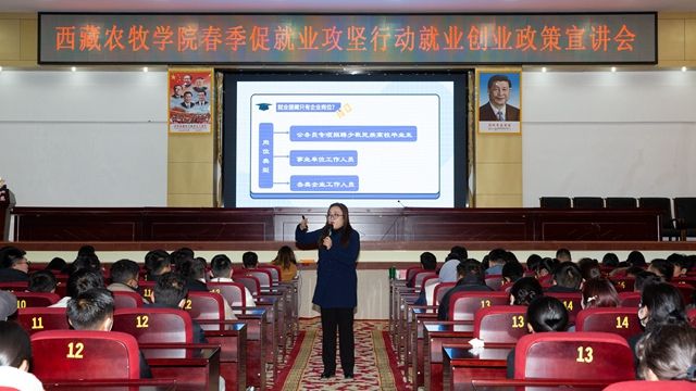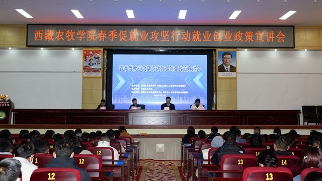 4月3日上午,我校组织就业创业工作人员、毕业班班主任及400余名毕业生参与“春季促就业攻坚行动”就业创业政策宣讲会。学校党委副书记、副校长苏大鹏,自治区就业服务中心与创业服务处处长王春林、教育厅就业指导中心副主任达娃、林芝市人社局人力资源市场服务中心主任郭亚军出席此次活动。