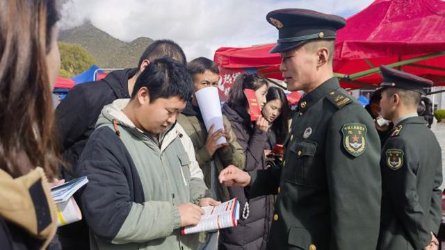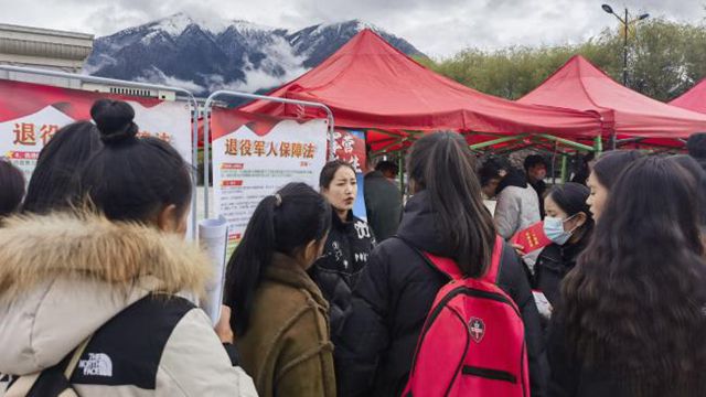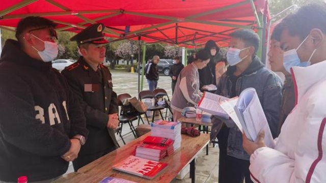 2023年4月4日,在“职引未来—西藏农牧学院2023年春季校园招聘会”现场,学校特别邀请林芝市巴宜区人武部、退役军人事务局人员进校开展征兵入伍宣传工作,并在活动现场为学生发放入伍宣传手册。广大学生怀着极大的兴趣和热情踊跃咨询,了解专业限制、体检要求、政审内容、军营生活、如何报考文职、优惠政策等等,宣传人员始终耐心细致热情地向大学生面对面一一答疑解惑,引导大学生积极响应祖国号召、携笔从戎,到军营建功立业;活动现场氛围热烈浓厚。