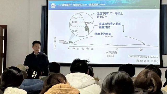 梁尔源研究员的报告围绕山地垂直带与高山树线、高山树线生态过程监测、青藏高原树线变化、喜马拉雅山垂直带、高山树木线展开。梁尔源研究员认为变暖利于青藏高原树线位置上升,但上升幅度并不明显,主要是由于爬升速率受到种间关系调控;喜马拉雅山南坡存在干旱胁迫导致高山树线,且树线上升速率受到春季降水和种内关系的调控;在高原面上借助高山灌木年轮研究,发现降水而非低温是高原面上灌丛生态系统的主要限制因子。