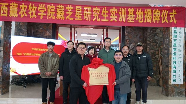 在波密县,调研组一行实地考察了我校与藏芝星农业科技有限公司建立的“茶叶资源开发与利用研究生实践基地”,详细了解实习和教学生活条件,并与我校2021届毕业生旦增、扎西占堆交流在公司的工作情况,还就推荐我校毕业生到企业工作进行了深入交流。研究生处副处长王军与藏芝星副总经理李子熙一起为基地揭牌,资环学院王贞红副教授与公司副总经理陈伟就共建实践基地签订合作协议。