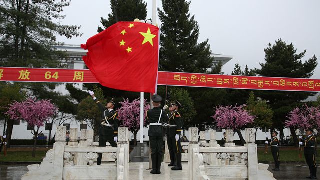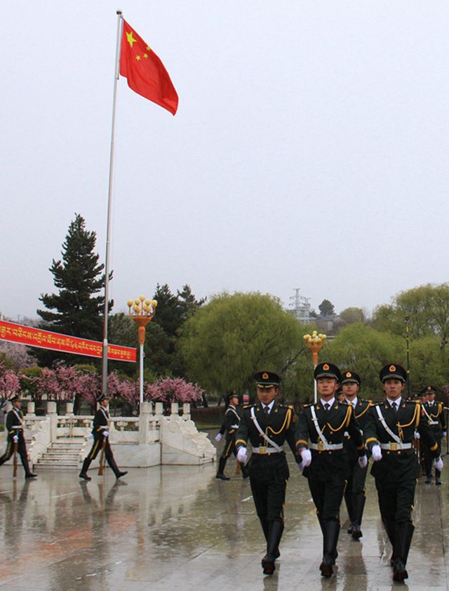 春雨霏霏万物苏,高原大地更沃腴。仪式开始前,一场春雨忽至,学校领导及3000余名师生代表冒雨坚守,国旗护卫队迈着坚毅的步伐,风雨无阻、铿锵前行。鲜艳的五星红旗迎着风雨冉冉升起,引领着师生忆苦思甜,共同铭记1959年那场春雨滋养过后,雪域高原走过的64年光辉岁月,激励着师生感恩奋进,不忘旧西藏的苦,珍惜新西藏的甜,不忘初心再出发,牢记使命启新程。